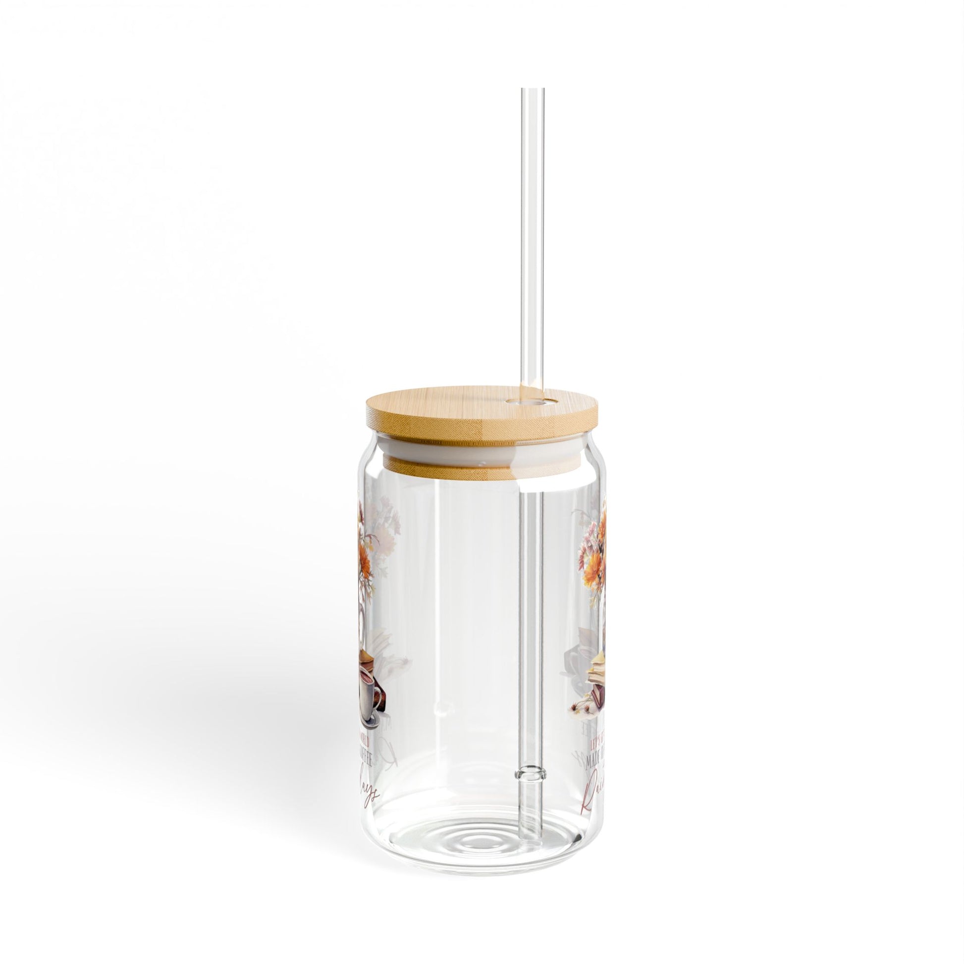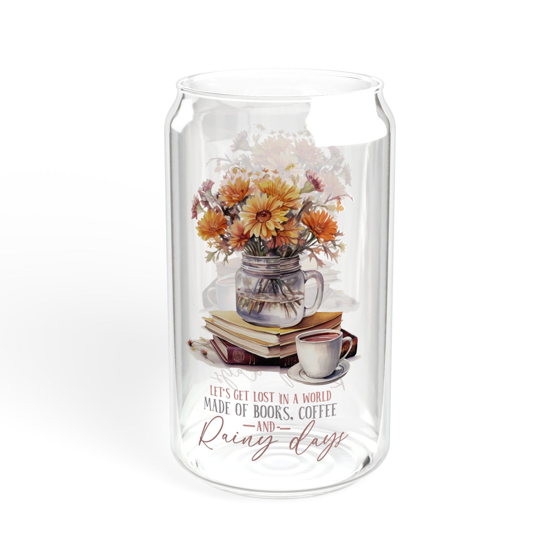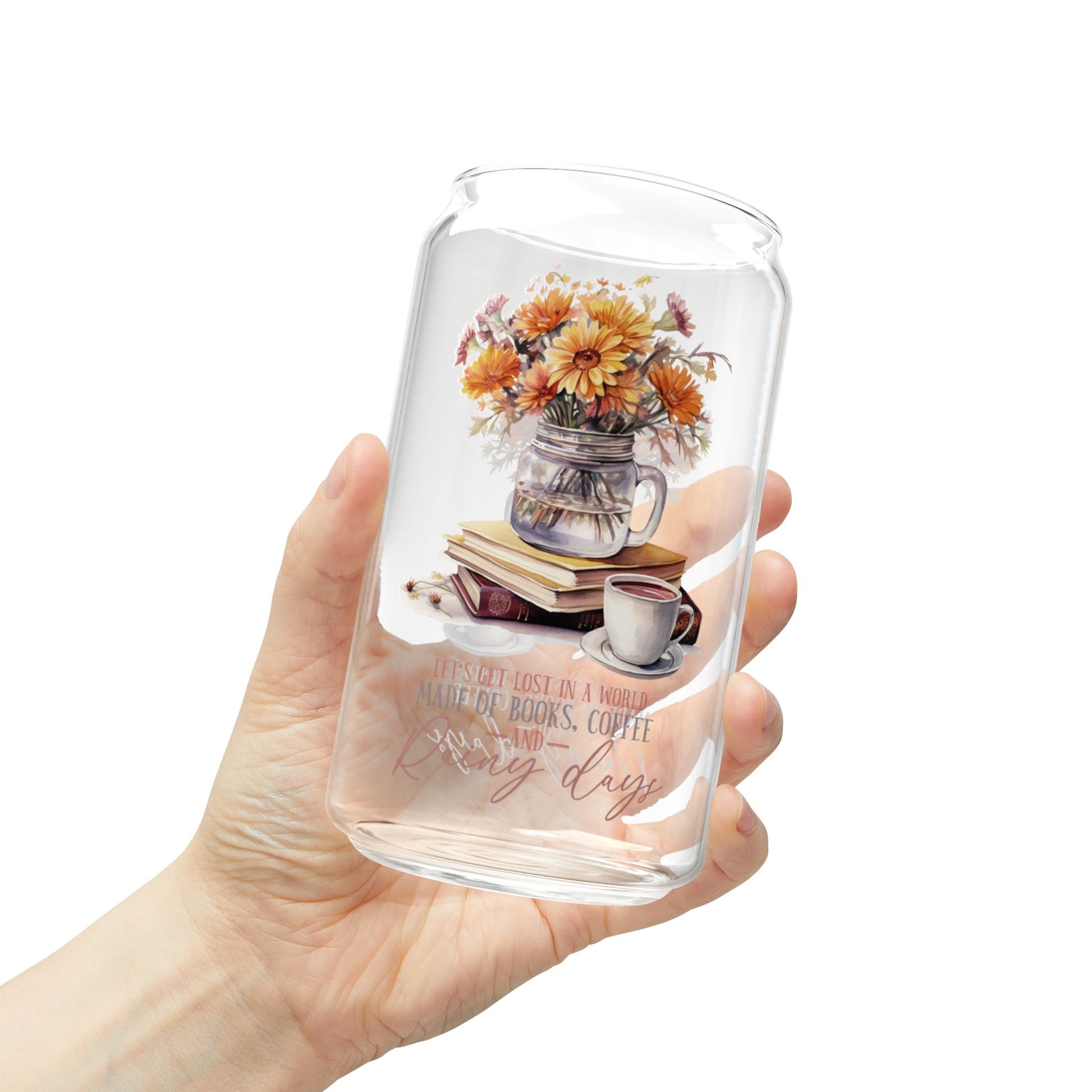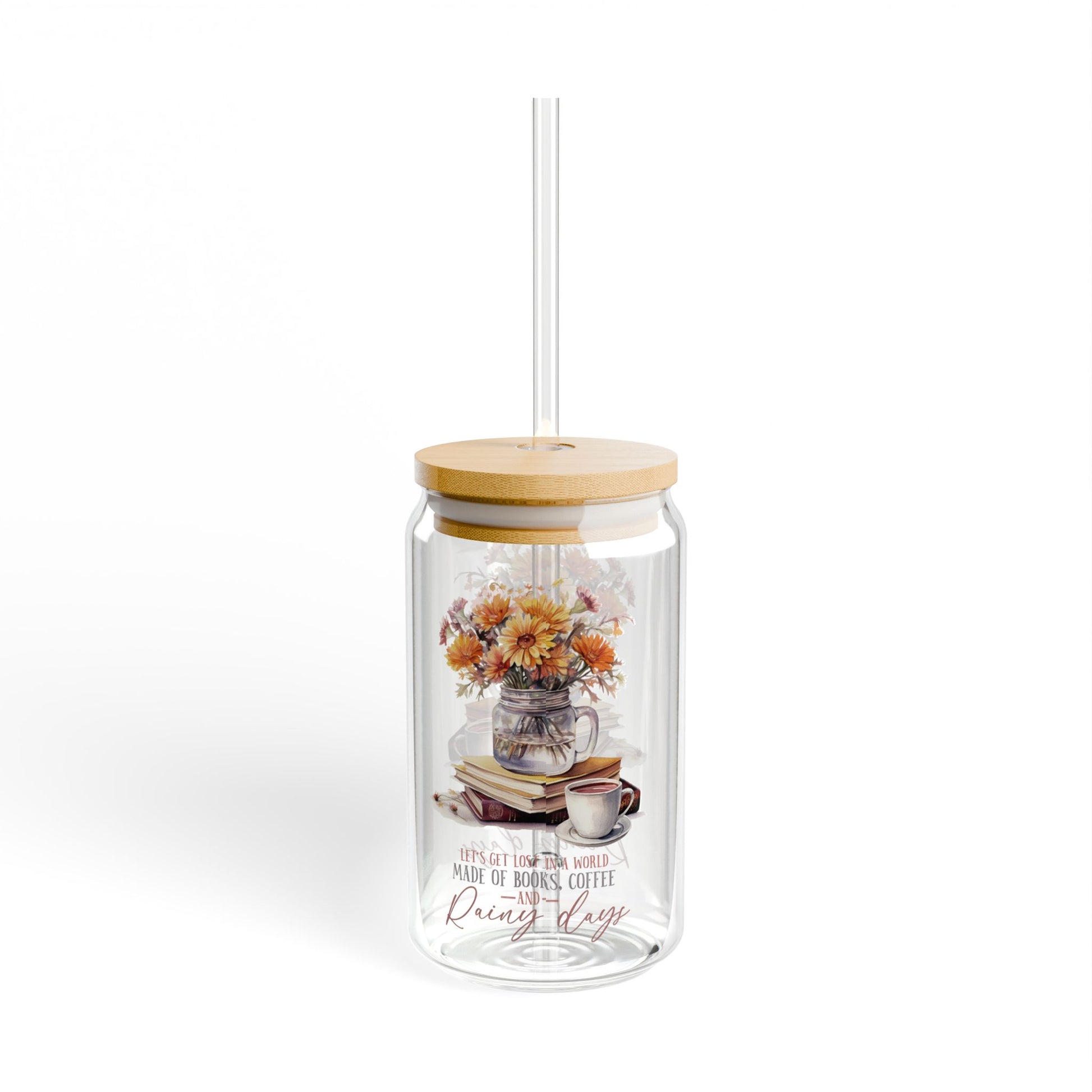 'Books Coffee and Rainy Days' | 16oz Custom Sipper Glass with Bamboo Lid & Straw – Perfect for Sweet Treats and Family Parties