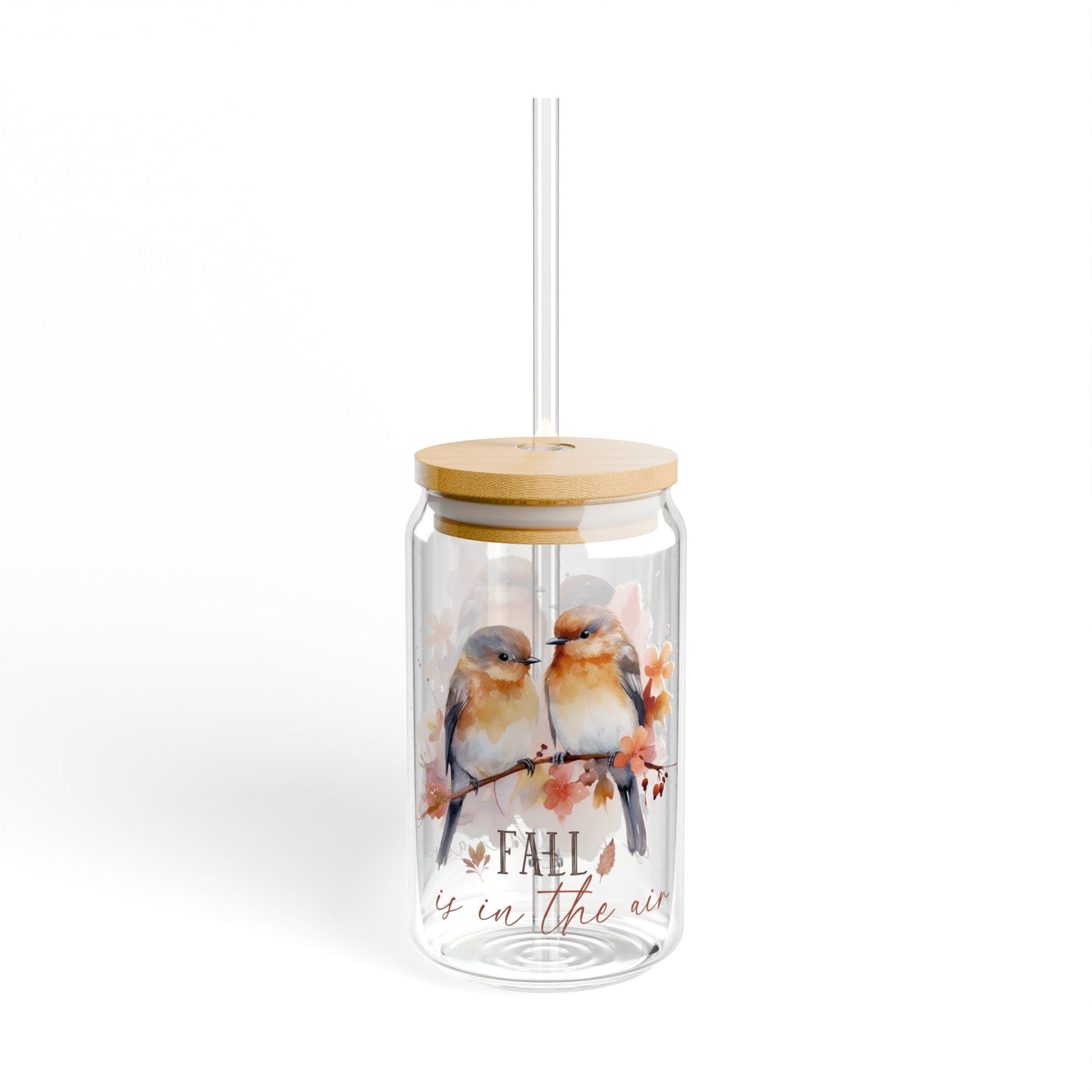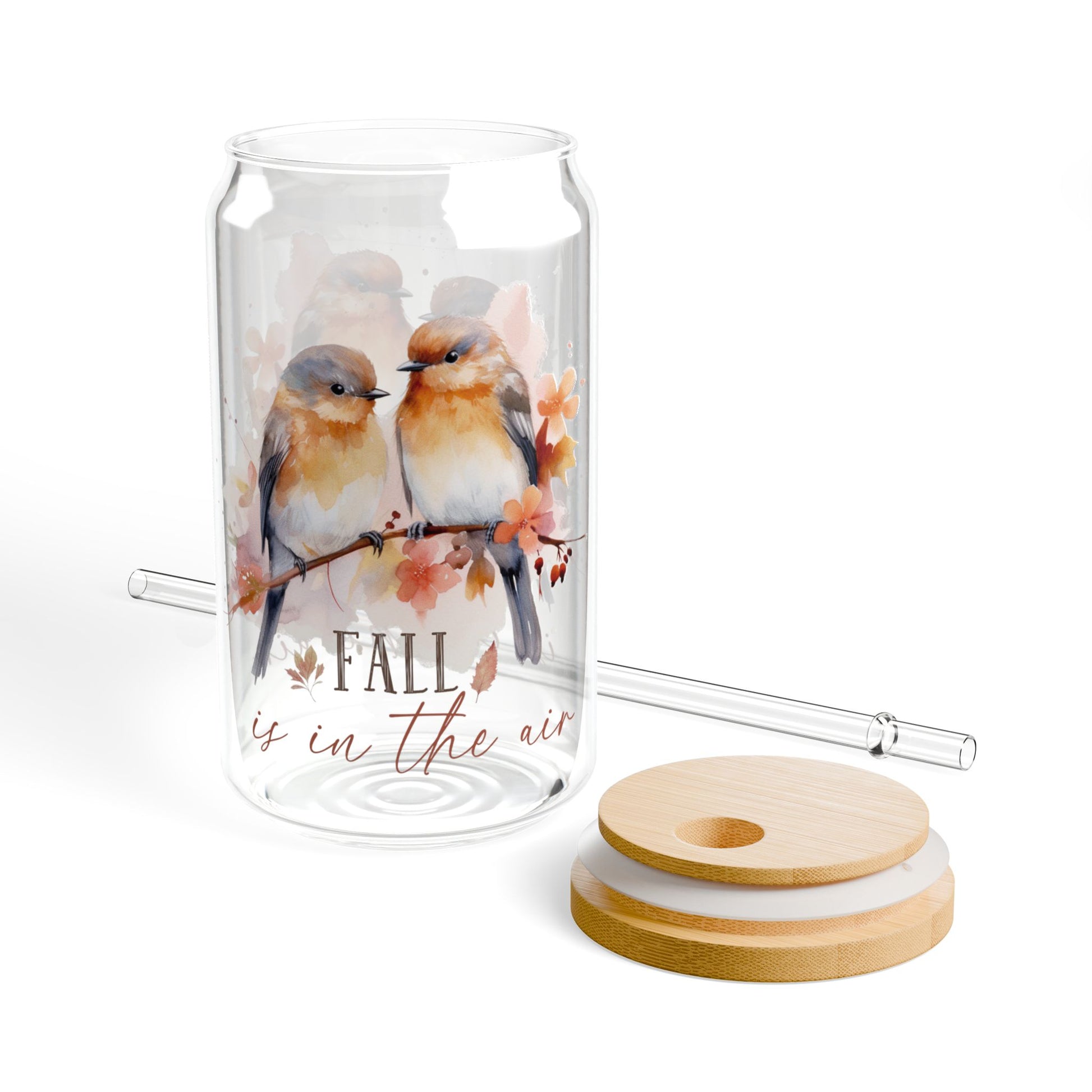 'Fall Is In The Air' | 16oz Custom Sipper Glass with Bamboo Lid & Straw – Perfect for Sweet Treats and Family Parties