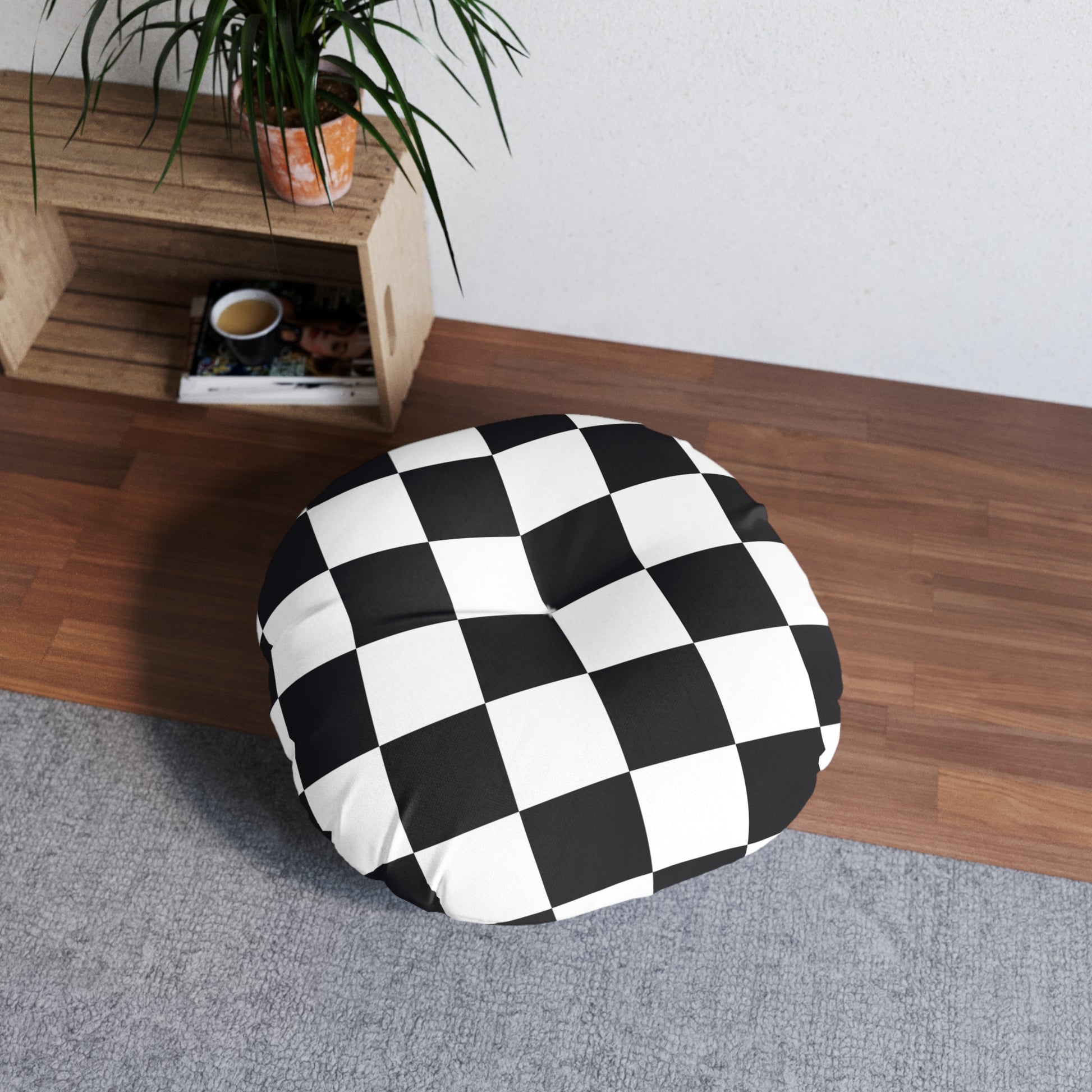 Elevate your living space with the Monochrome Luxe, a 26" or 30" tufted round pillow that marries bold contrast with refined design. Its high-definition black-and-white checkered pattern creates a dynamic visual centerpiece, while the plush tufted construction delivers exceptional comfort and structure.