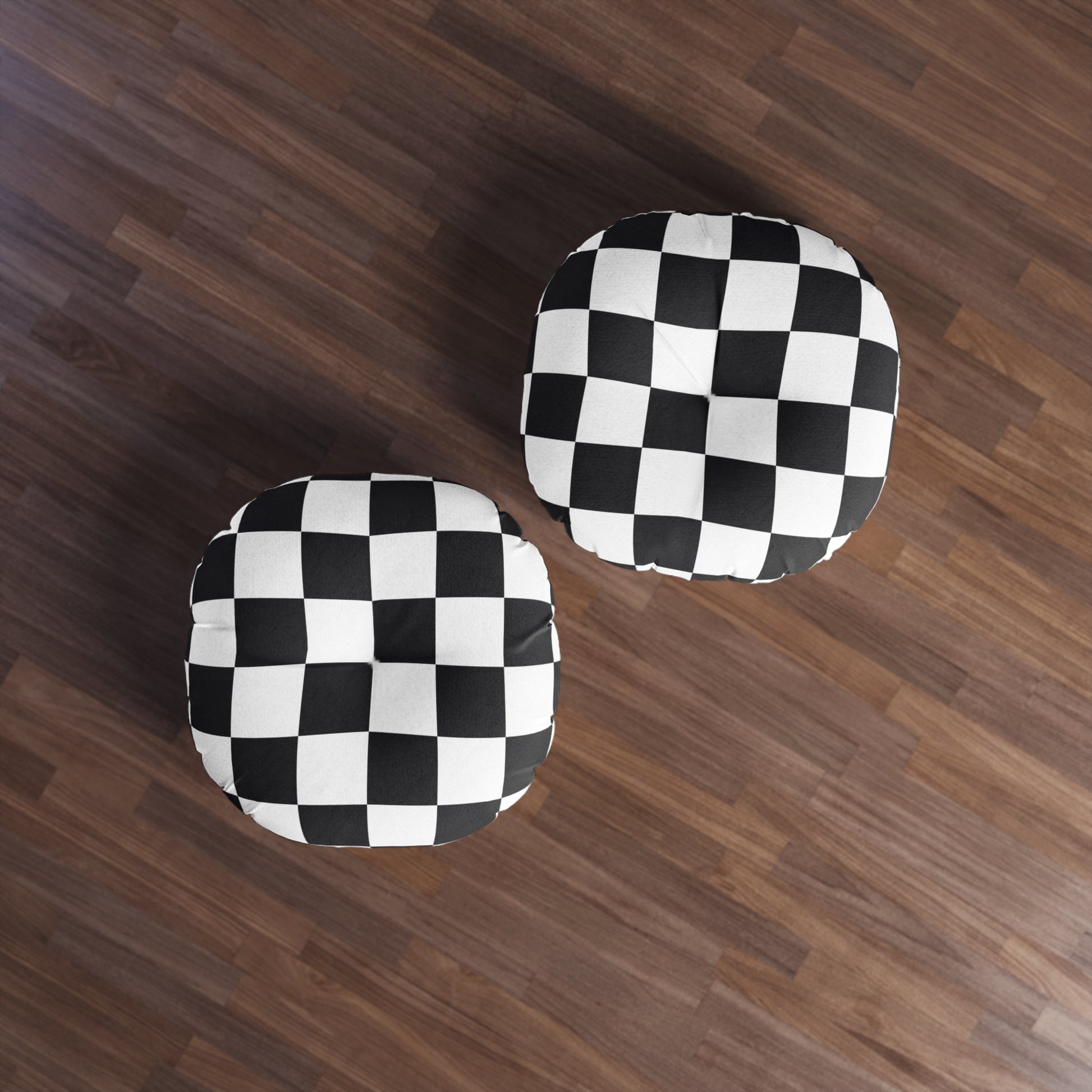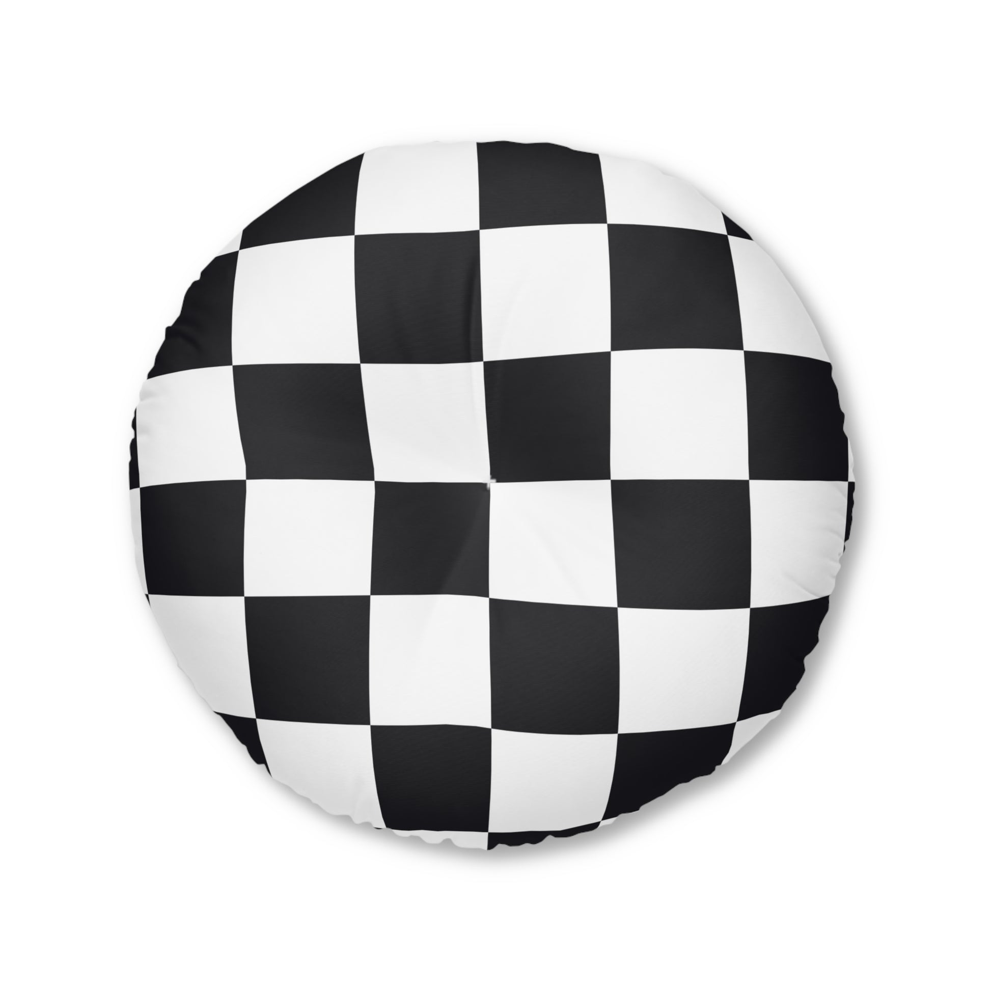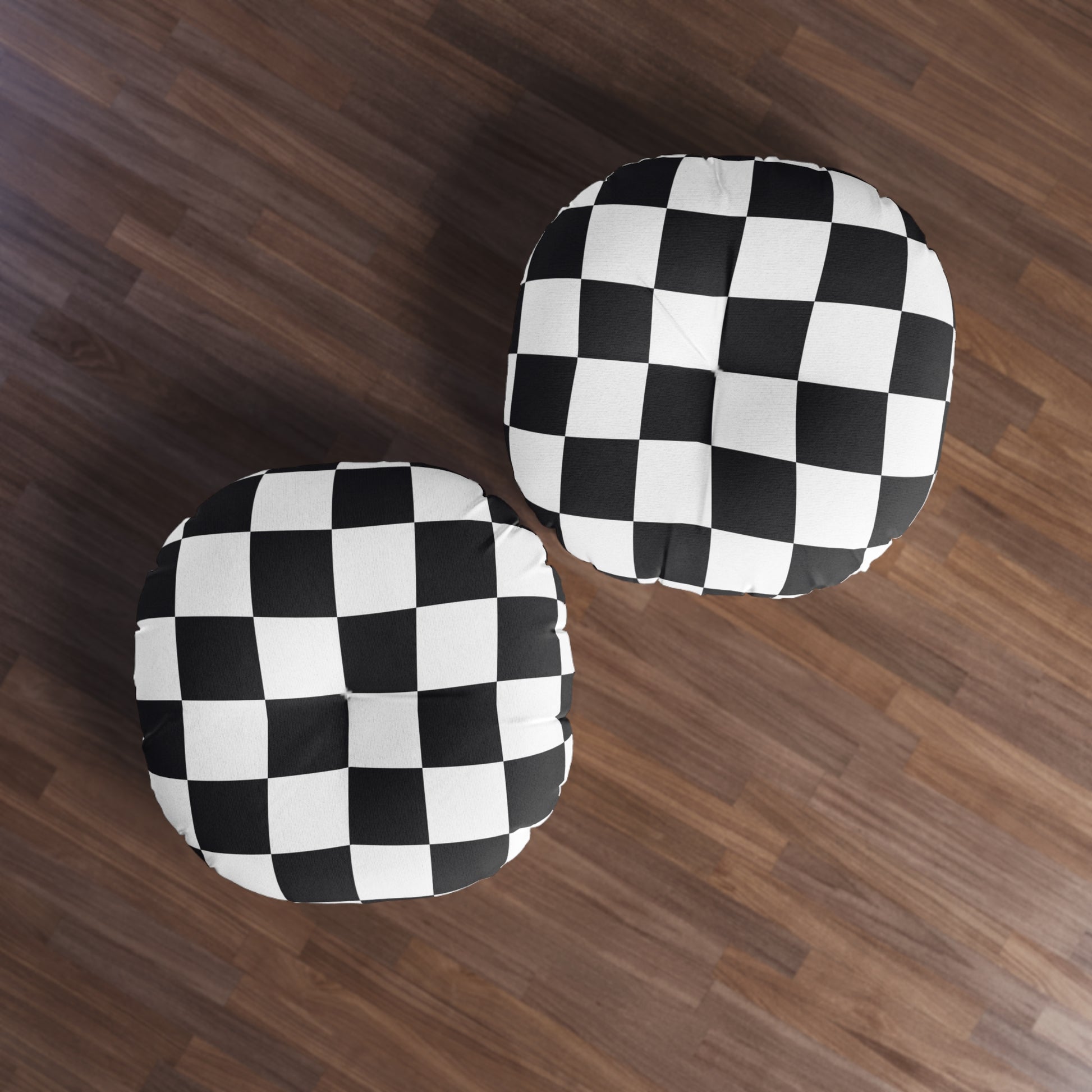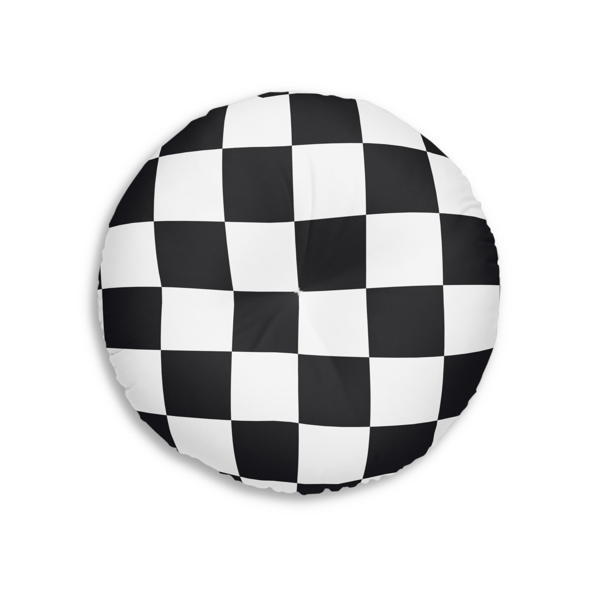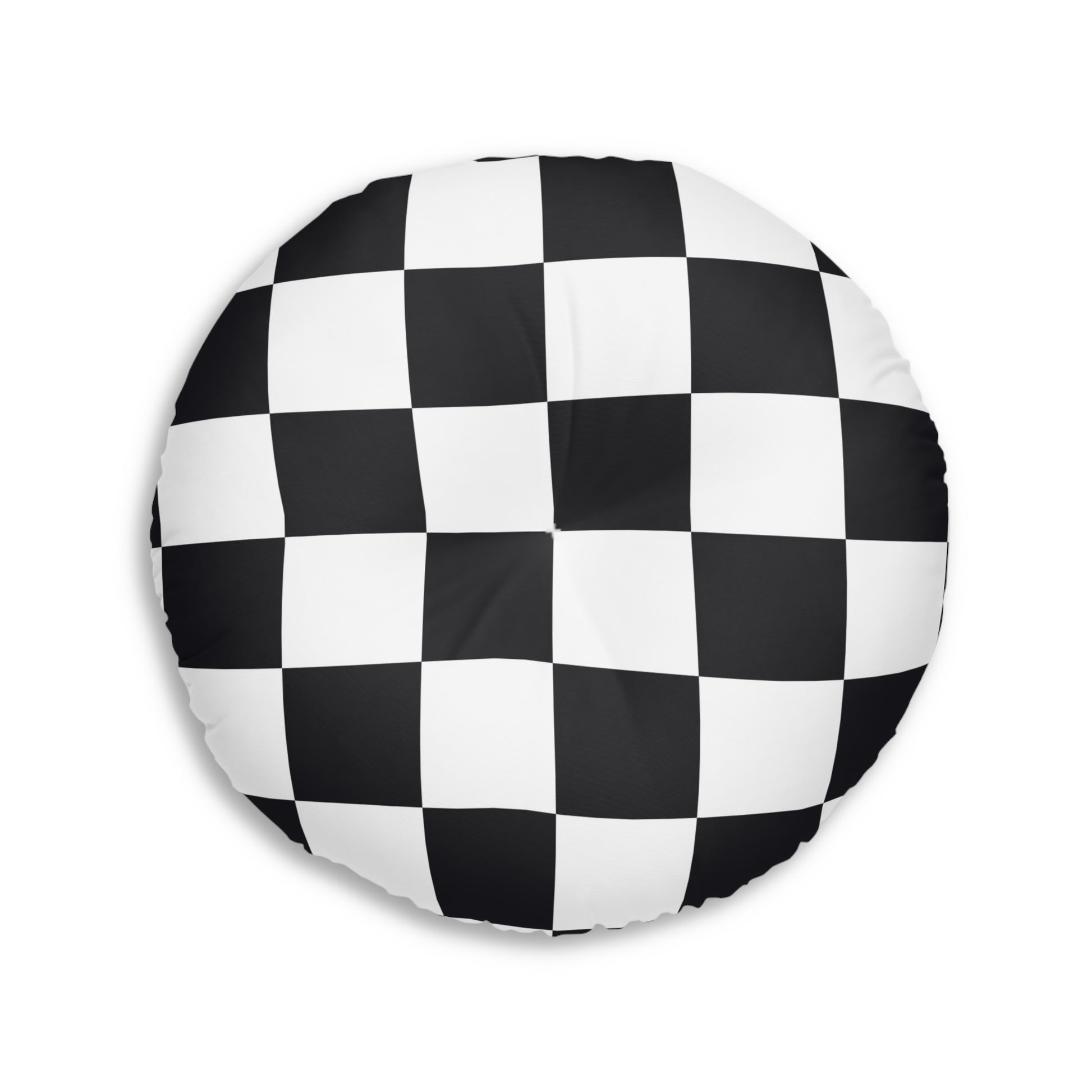 Monochrome Luxe | Black & White Checkered Tufted Round Pillow | Bold Statement in Geometric Elegance