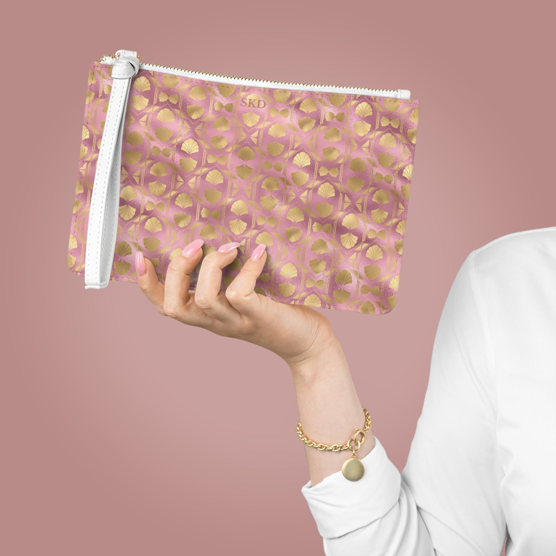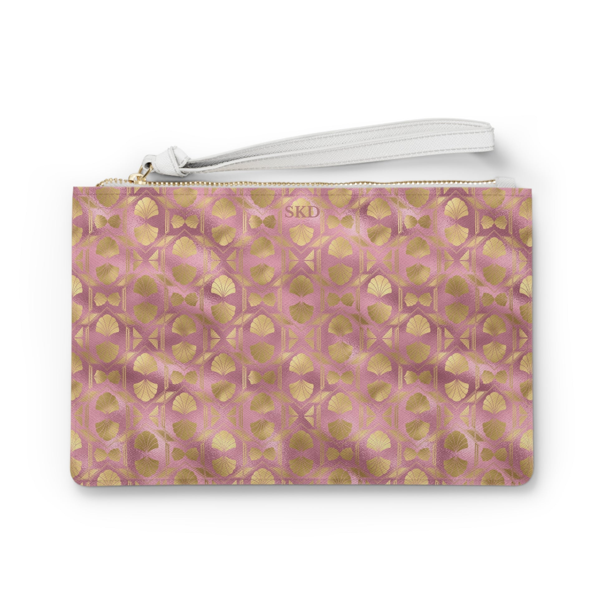 Radiate romantic sophistication with Blush Horizon — the soft blush-pink clutch adorned with a luxurious gold geometric motif that exudes feminine charm and modern elegance. Crafted from premium faux leather, this artfully designed accessory transitions effortlessly from a sunlit brunch to an evening soirée, making it a must-have statement piece for style lovers. Its lightweight structure and crisp white wrist strap ensure comfort and ease while adding a fresh, contemporary contrast to its warm, opulent pattern. Perfect for garden parties, weddings, or glamorous nights out, this clutch blends romantic pastel beauty with functional sophistication, making it an irresistible gift for those who treasure elevated style.