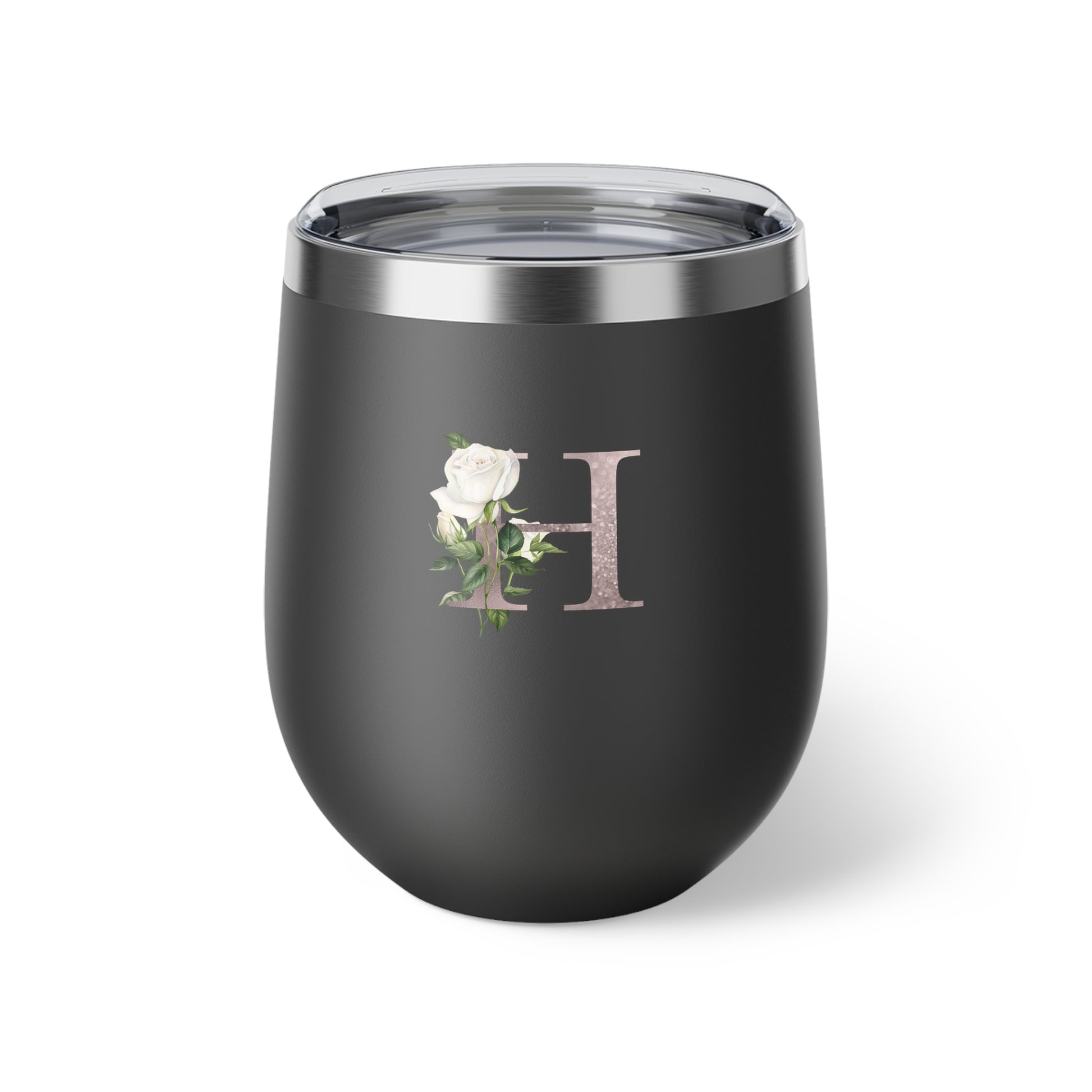 Letter H - Personalized Romantic White Rose Copper Vacuum Insulated Cup, 12 oz – Perfect for Weddings