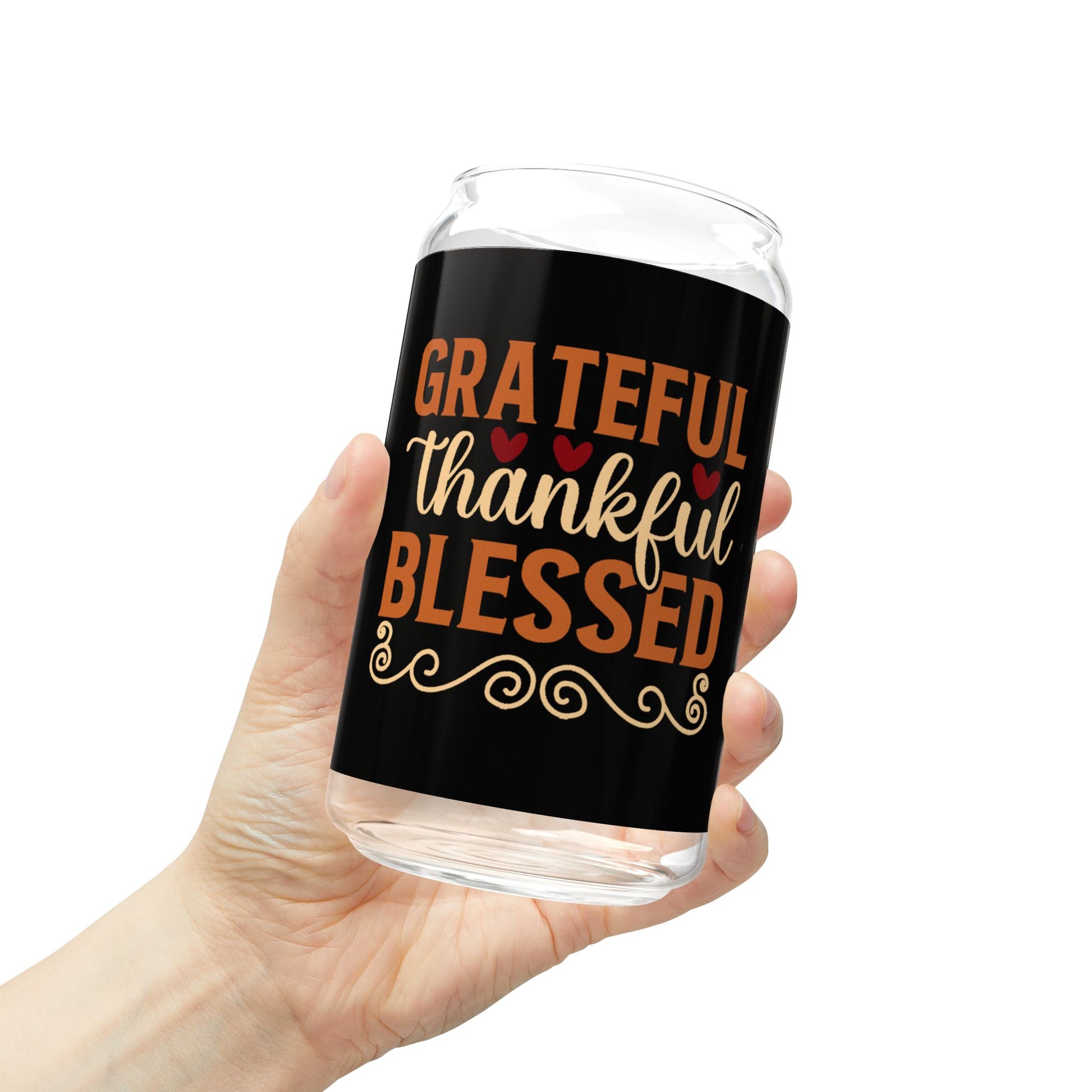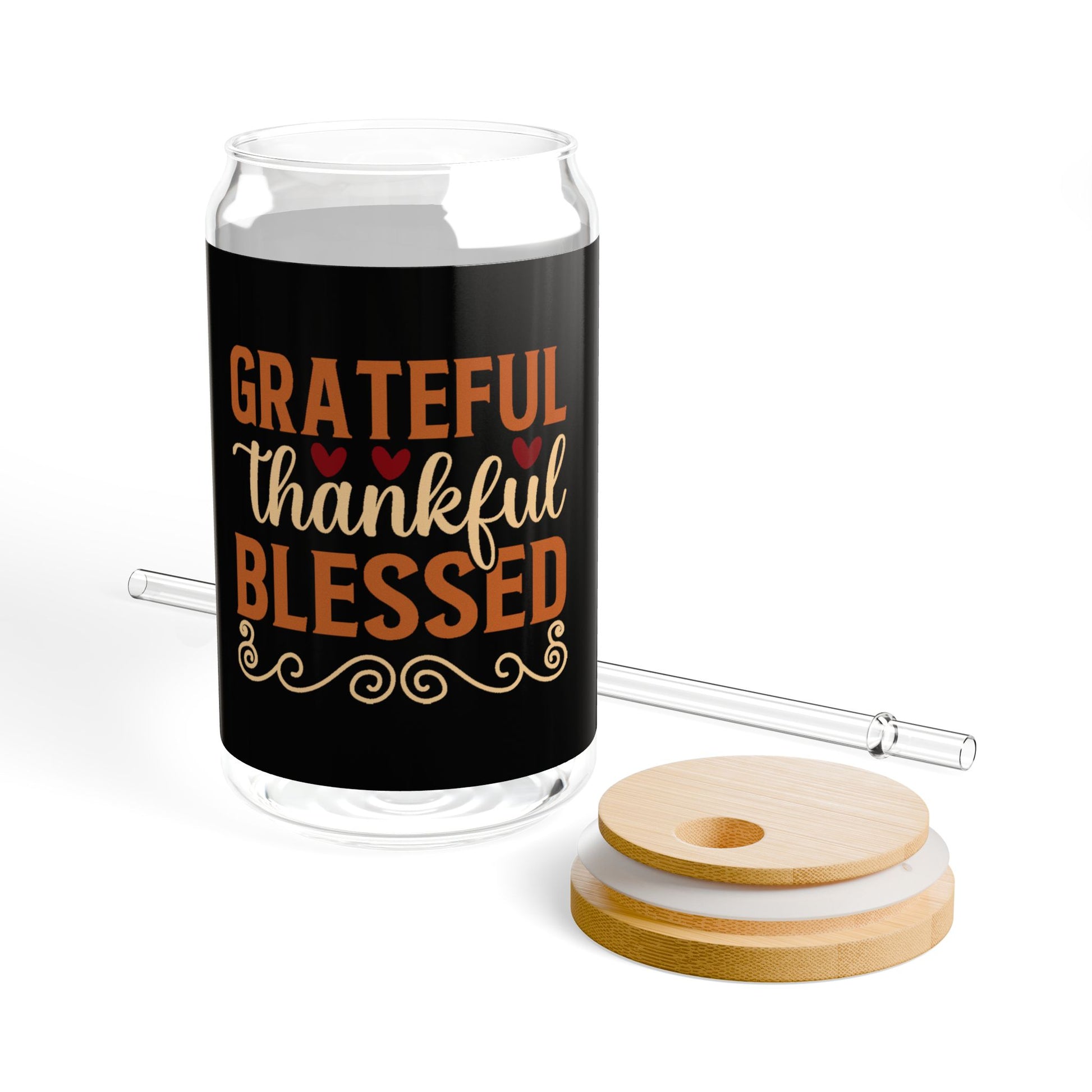 Make your family gatherings extra special with our 16oz Sipper Glass, featuring a custom "Grateful Thankful Blessed" design. This sleek, clear tempered glass is perfect for serving refreshing drinks alongside a cozy buffet of sweet treats. Available with an optional bamboo lid and Tritan plastic straw for added convenience, it's durable, stylish, and eco-friendly. Made in the USA from globally sourced materials, this sipper glass is BPA Free, FDA Certified, and Cal. Prop 65 compliant. Enjoy your favorite beverages safely, whether it's cocktails, juices, or festive holiday drinks. Ideal for family parties or as a thoughtful holiday gift.
