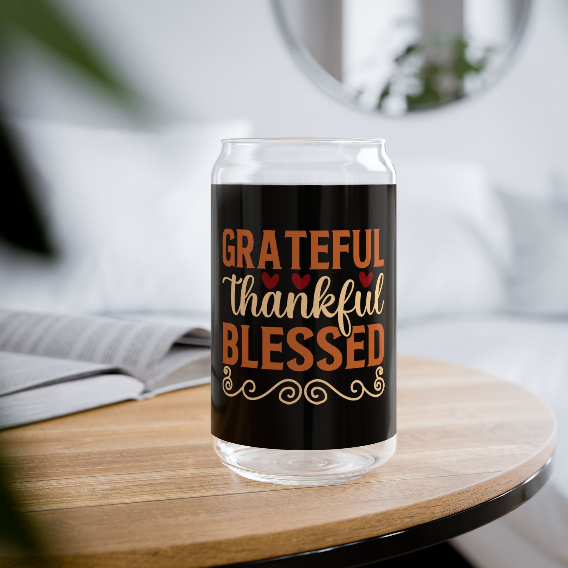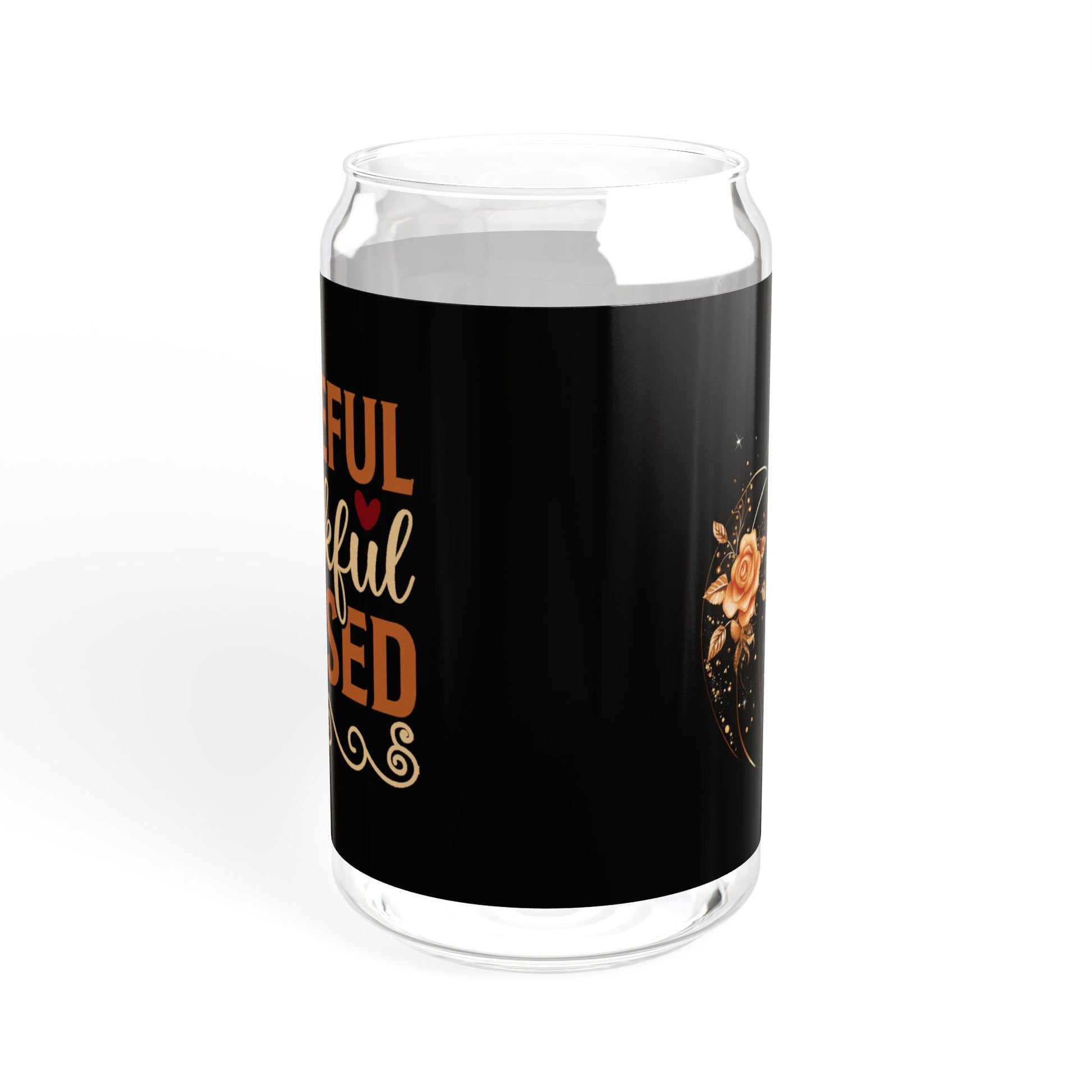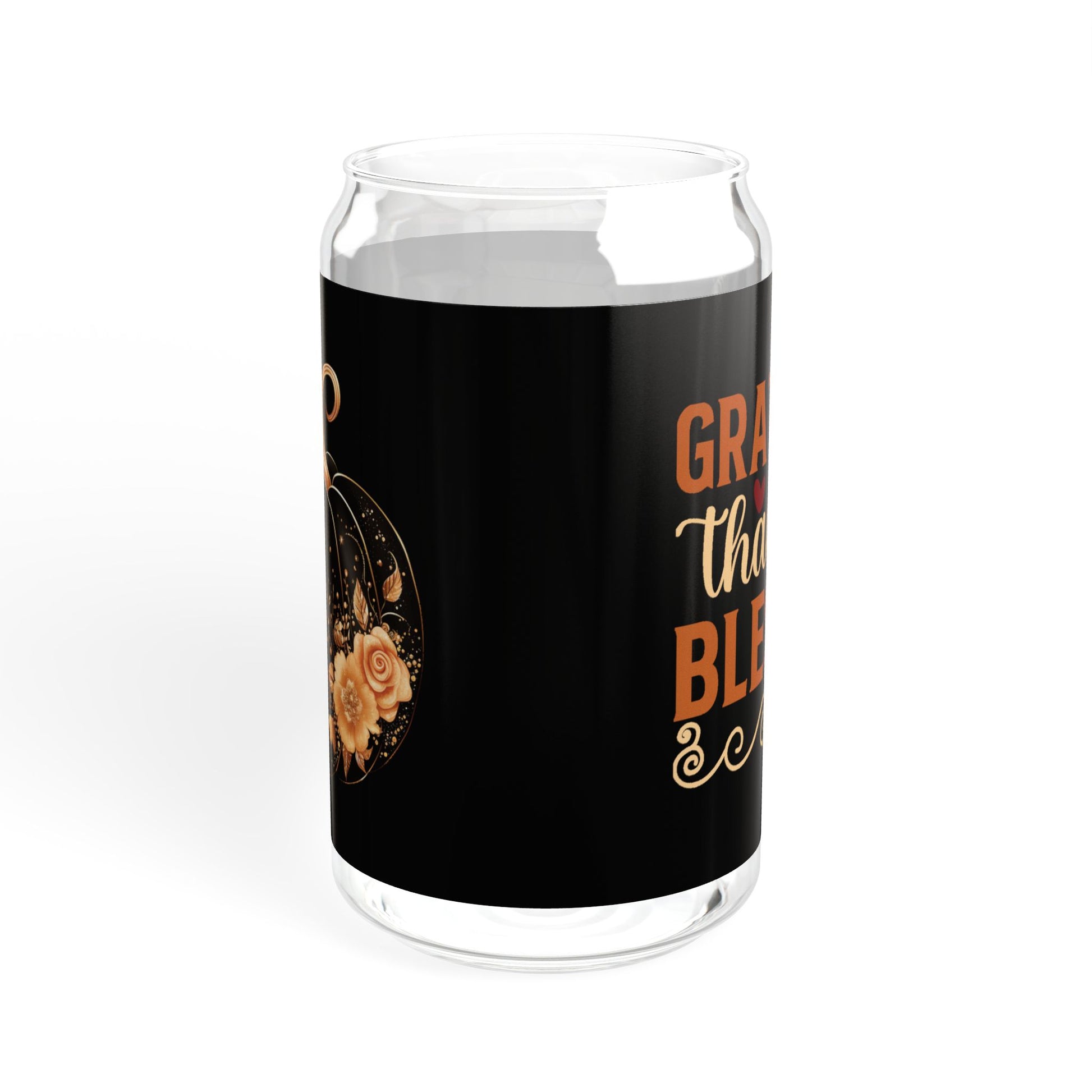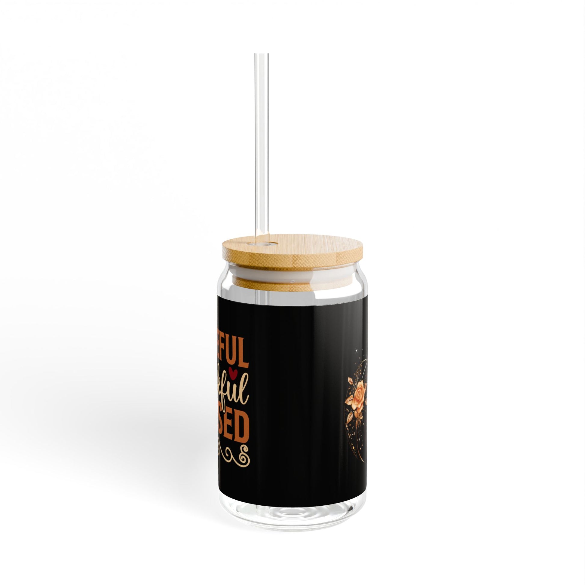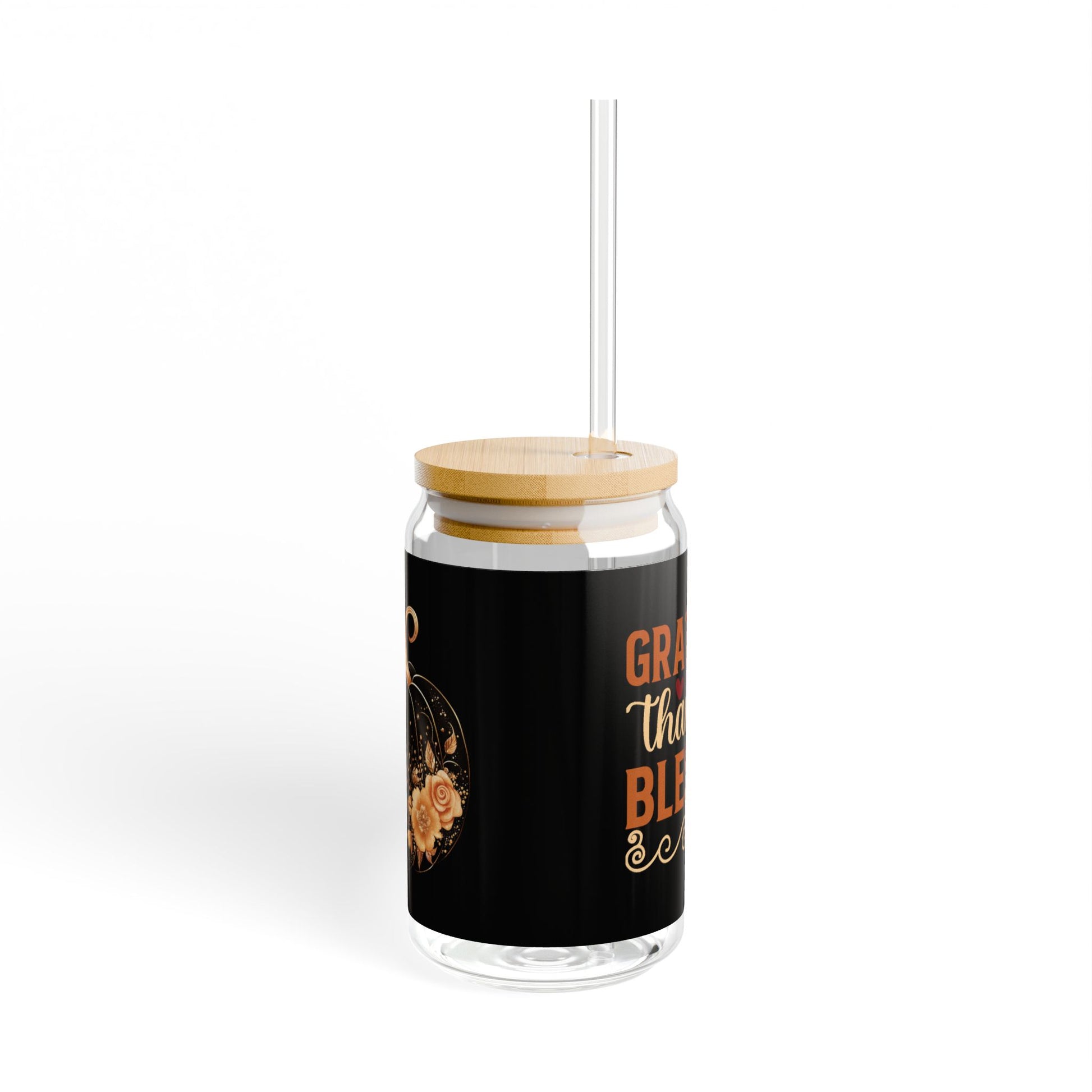"Grateful Thankful Blessed" | 16oz Custom Sipper Glass with Bamboo Lid & Straw – Perfect for Sweet Treats and Family Parties