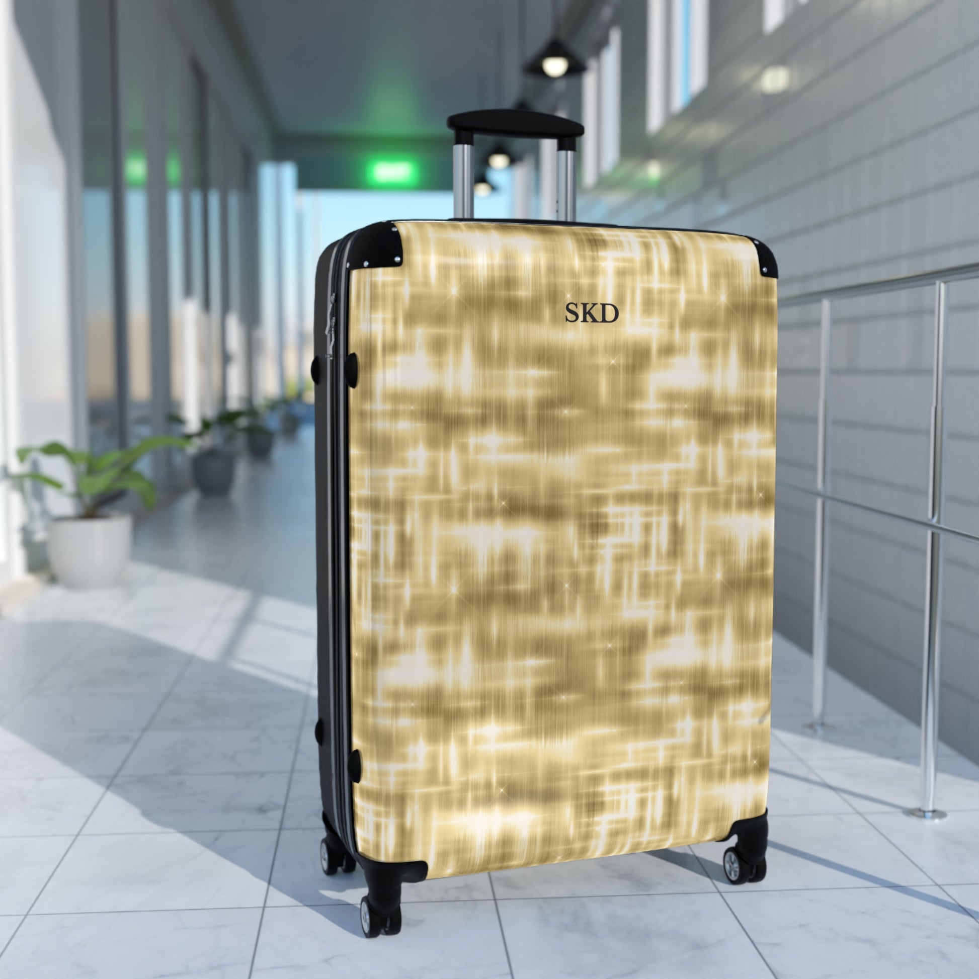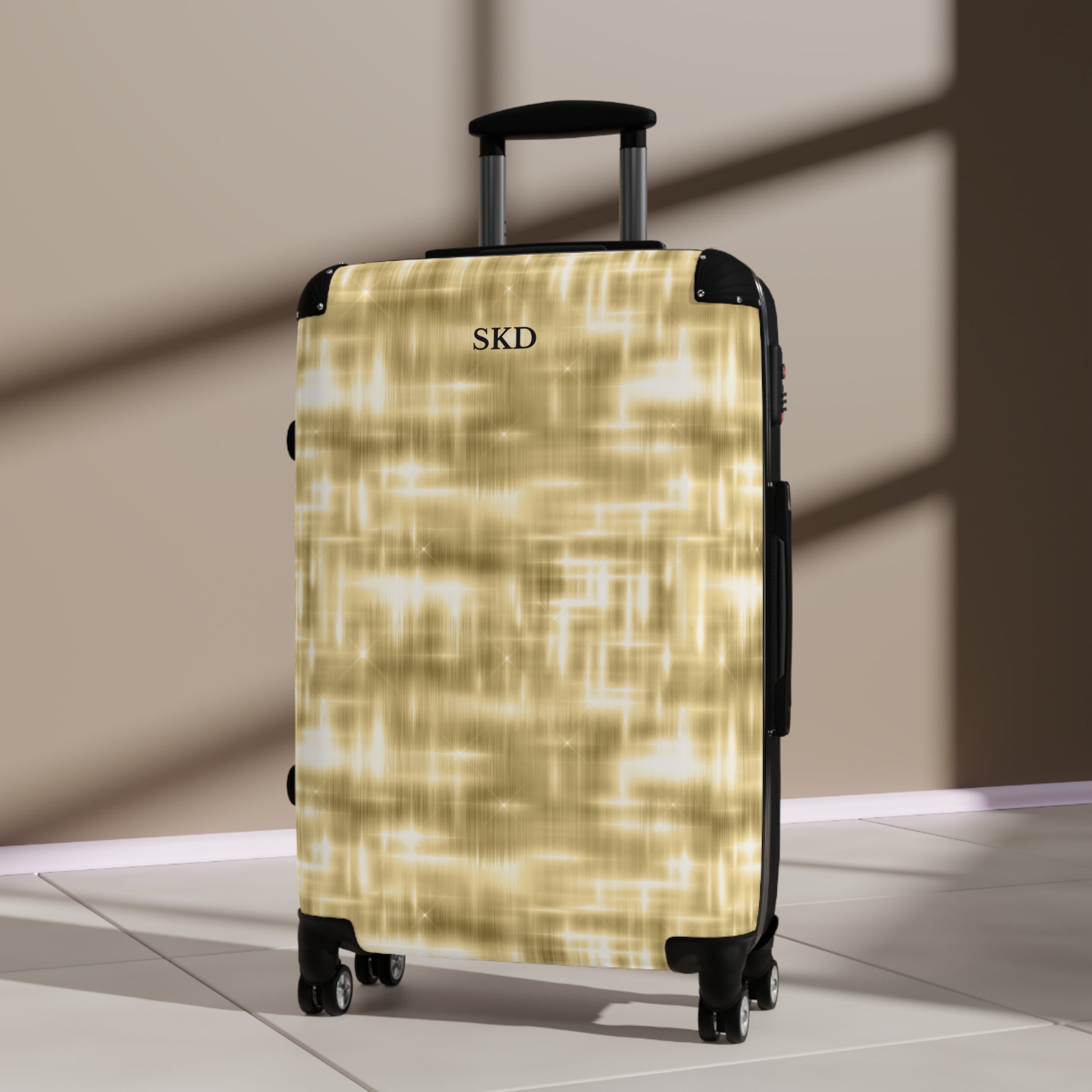 Aurum Gala | Glitter & Gold Suitcase with Built-In Lock and Durable Protection | Radiant Showpiece for Stylish Travel, Lightweight Carry-On, Vacation Essential
