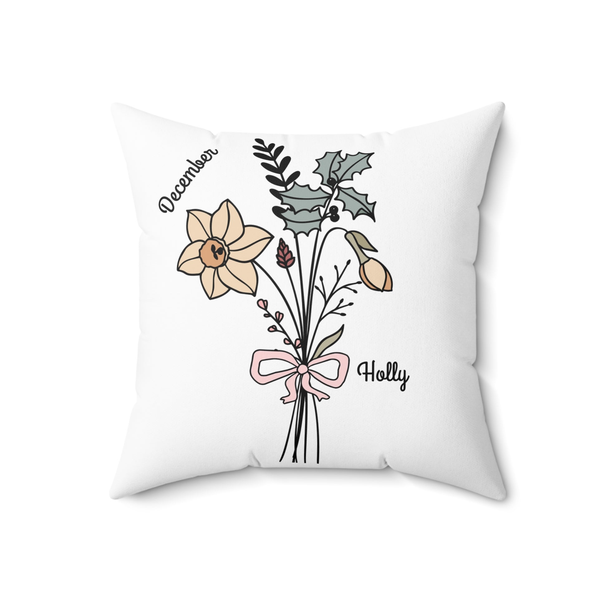 December Holly Birth Flower - Custom Spun Polyester Square Pillow – Stylish Double-Sided Home Décor Accent for a Personalized Touch