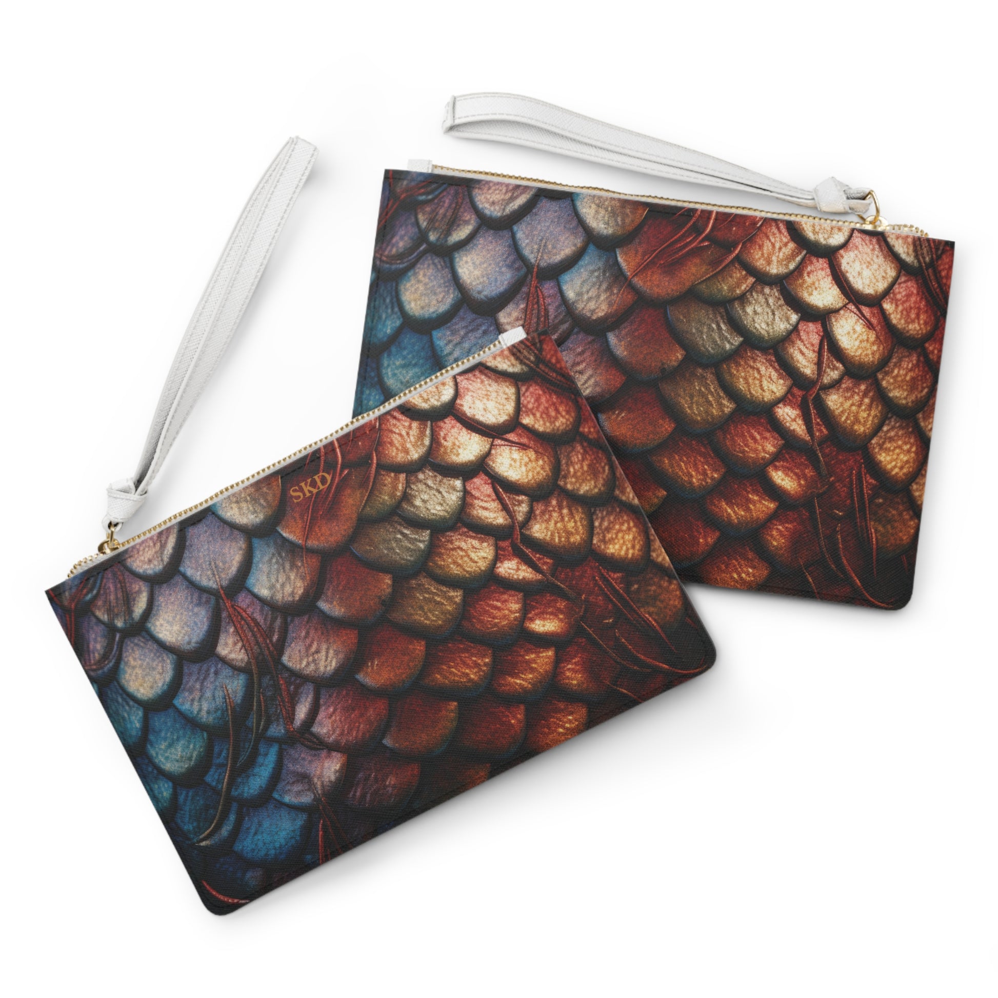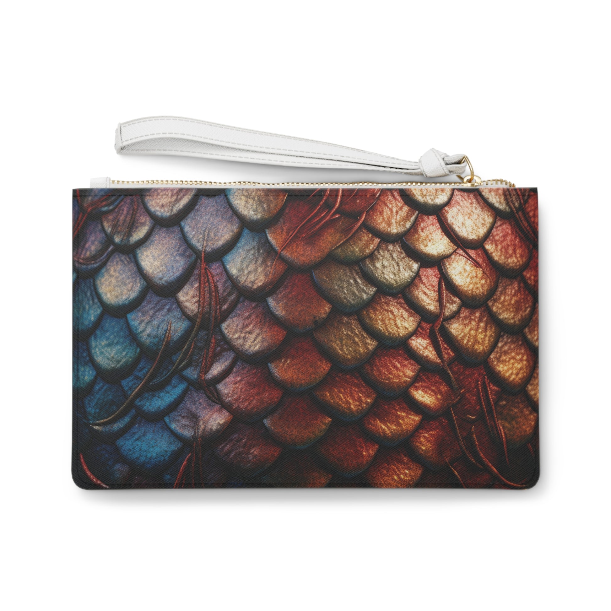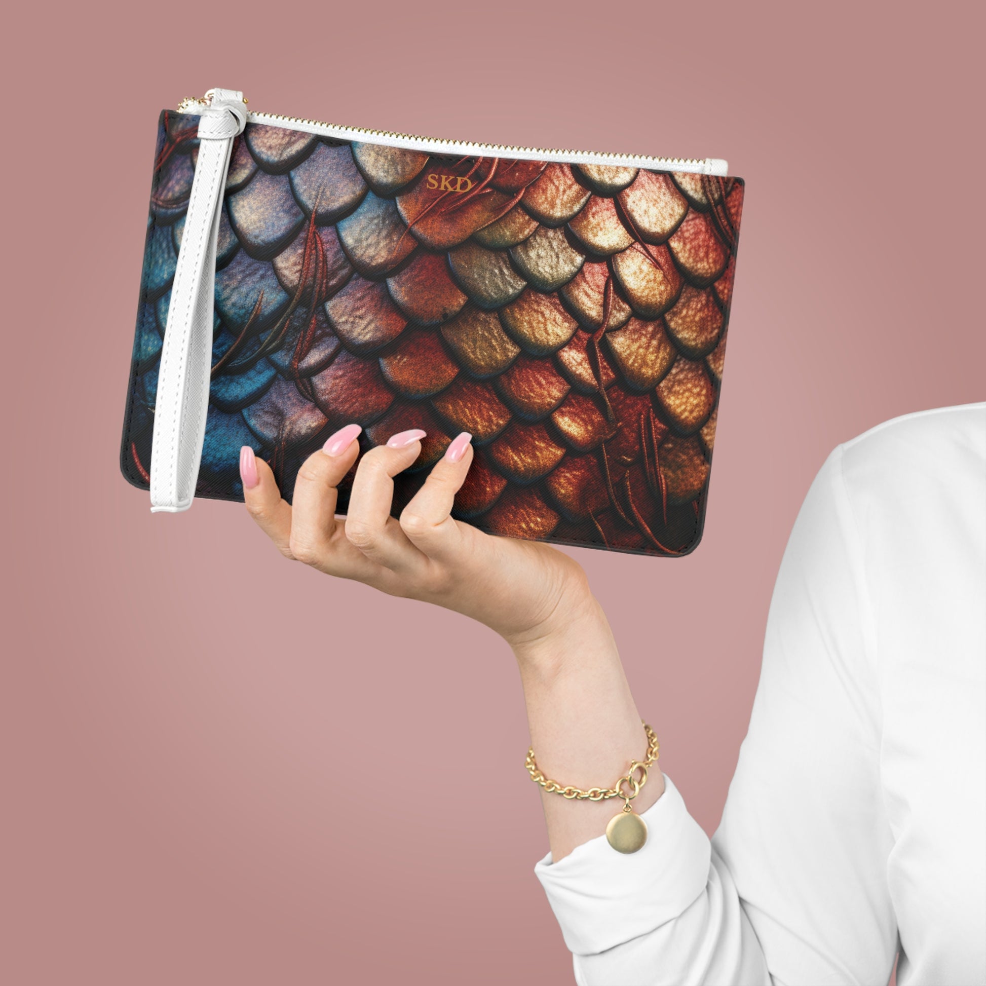 - Multi-toned metallic-hued dragon scale clutch for fantasy-inspired luxury