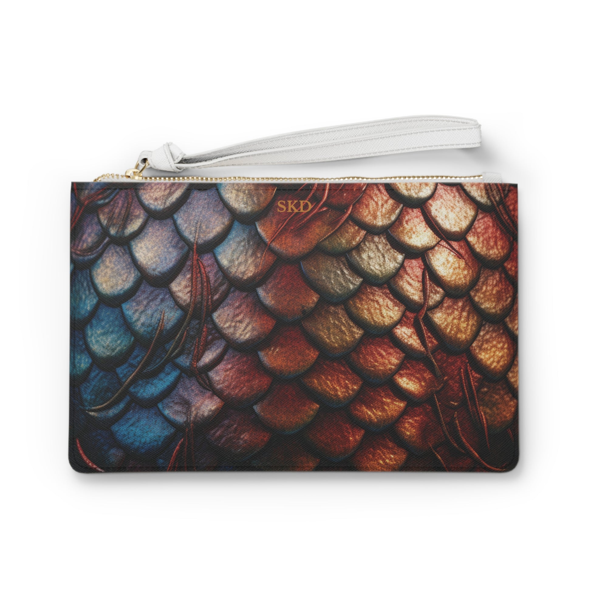 Unleash your boldest style with Limited Edition Enchanting Mystique — the mesmerizing multi-toned clutch featuring a realistic, embossed dragon-scale pattern in iridescent hues of bronze, copper, and sapphire that radiates mystical elegance and fierce glamour. Crafted from premium faux leather with a luxurious textured finish, this statement accessory transitions effortlessly from a daring daytime look to an evening of show-stopping allure. Its lightweight structure and crisp white wrist strap offer both comfort and modern contrast, while the sleek silhouette keeps your essentials secure and organized. Perfect for fantasy-inspired events, luxury evenings, or nights when you want all eyes on you, this clutch blends mythical sophistication with contemporary versatility, making it a must-have treasure for those who live life boldly and beautifully.