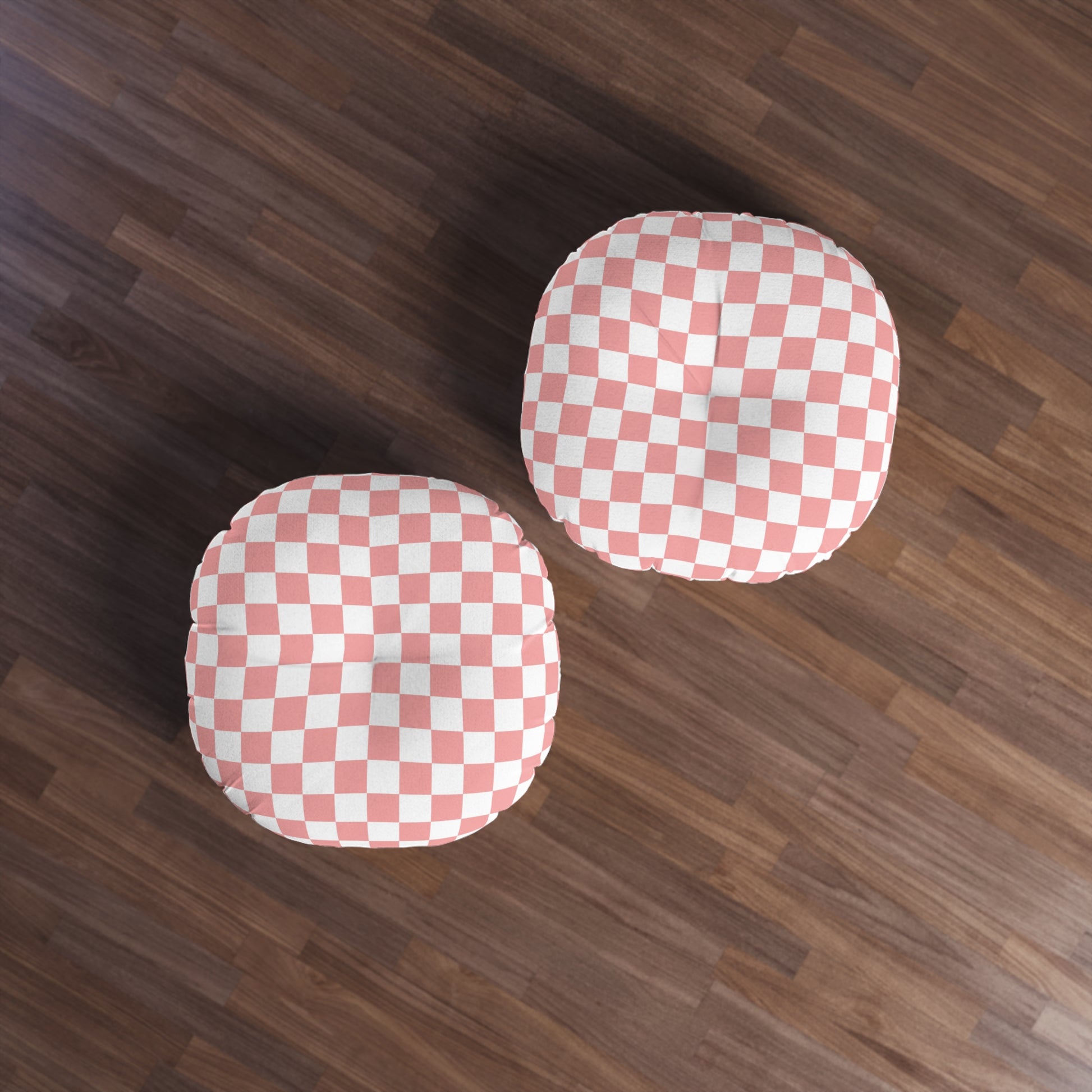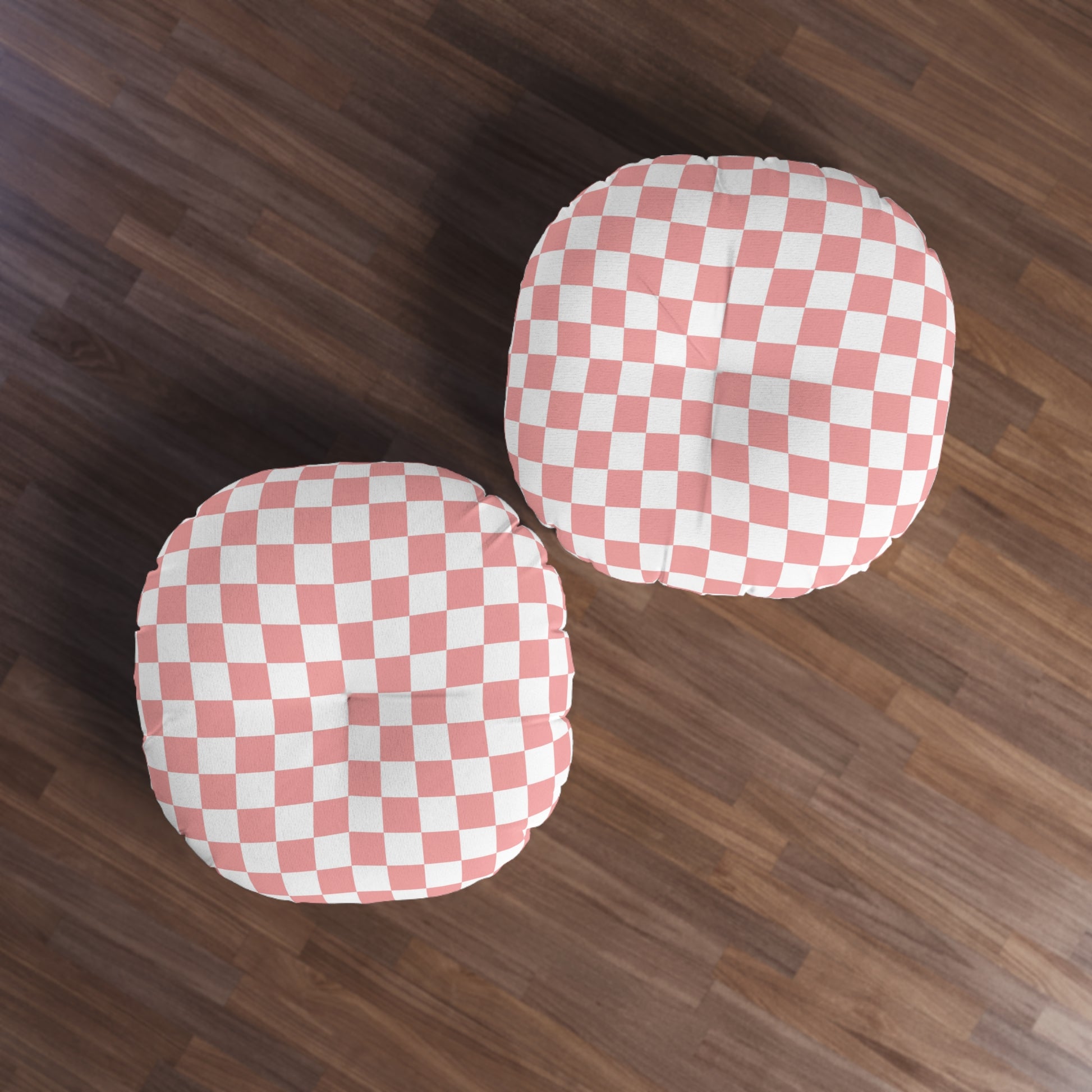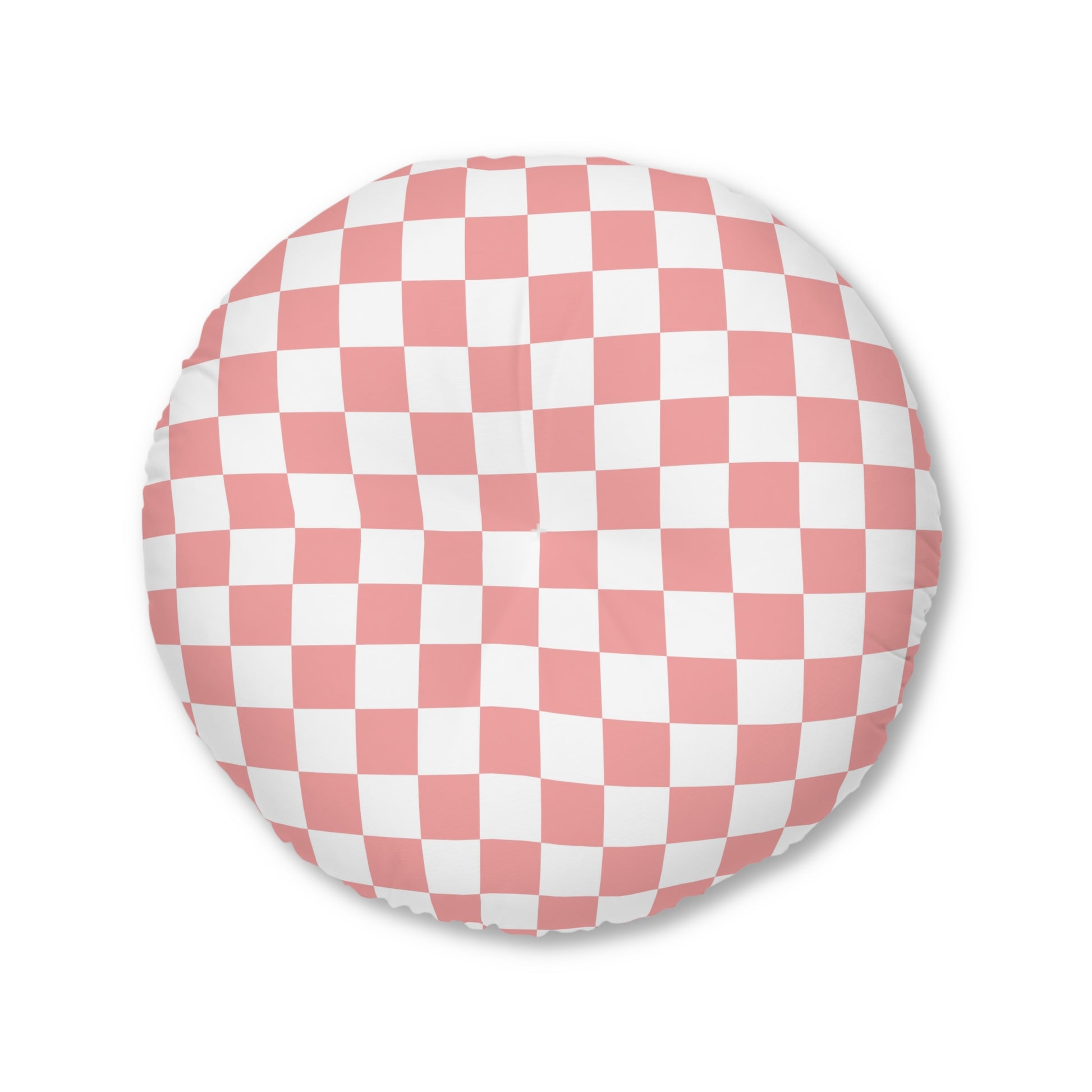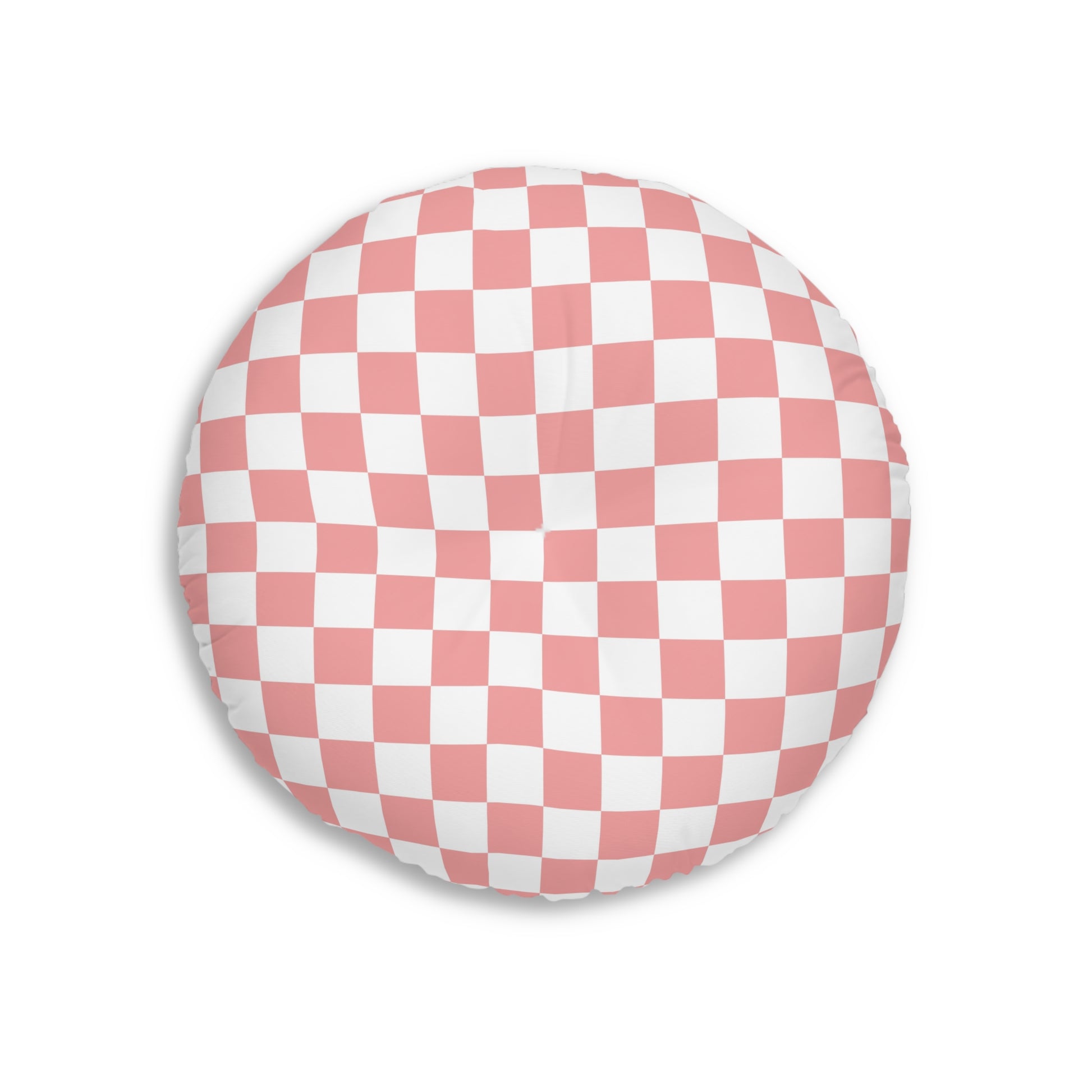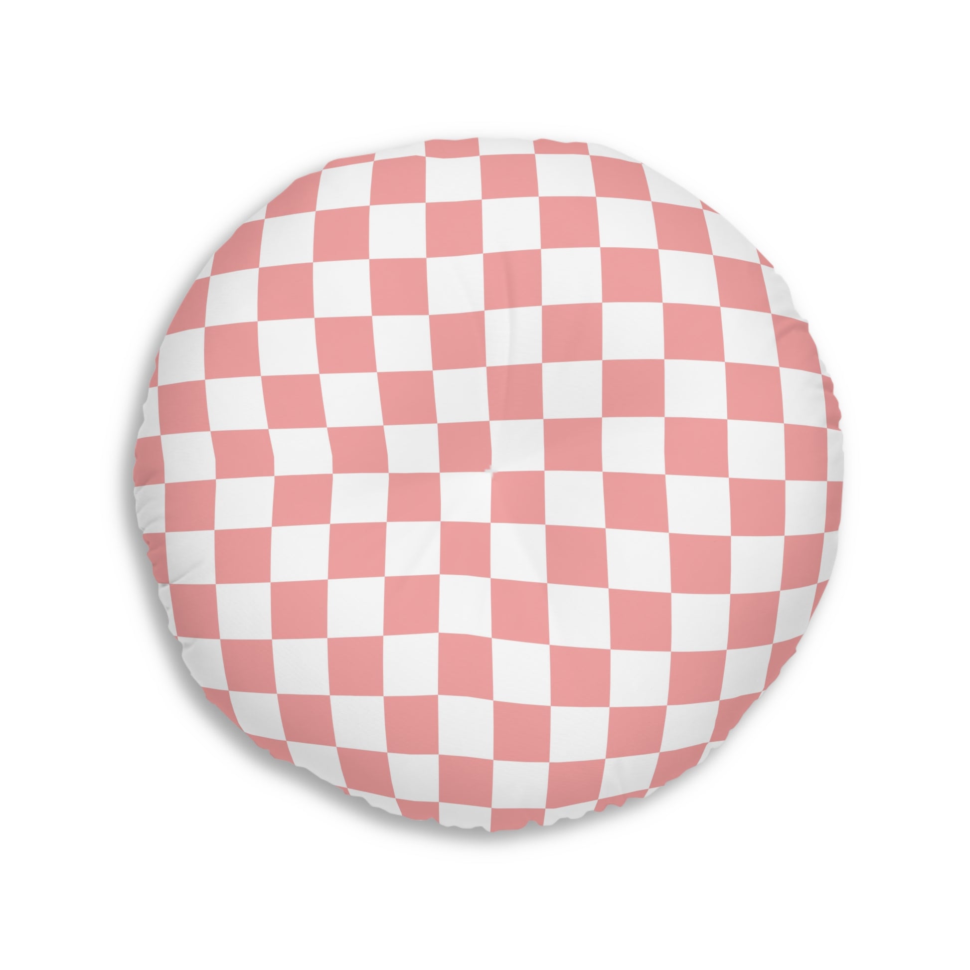 Blush Checkered Round Tufted Floor Pillow | Playful Vintage Style Meets Plush Comfort