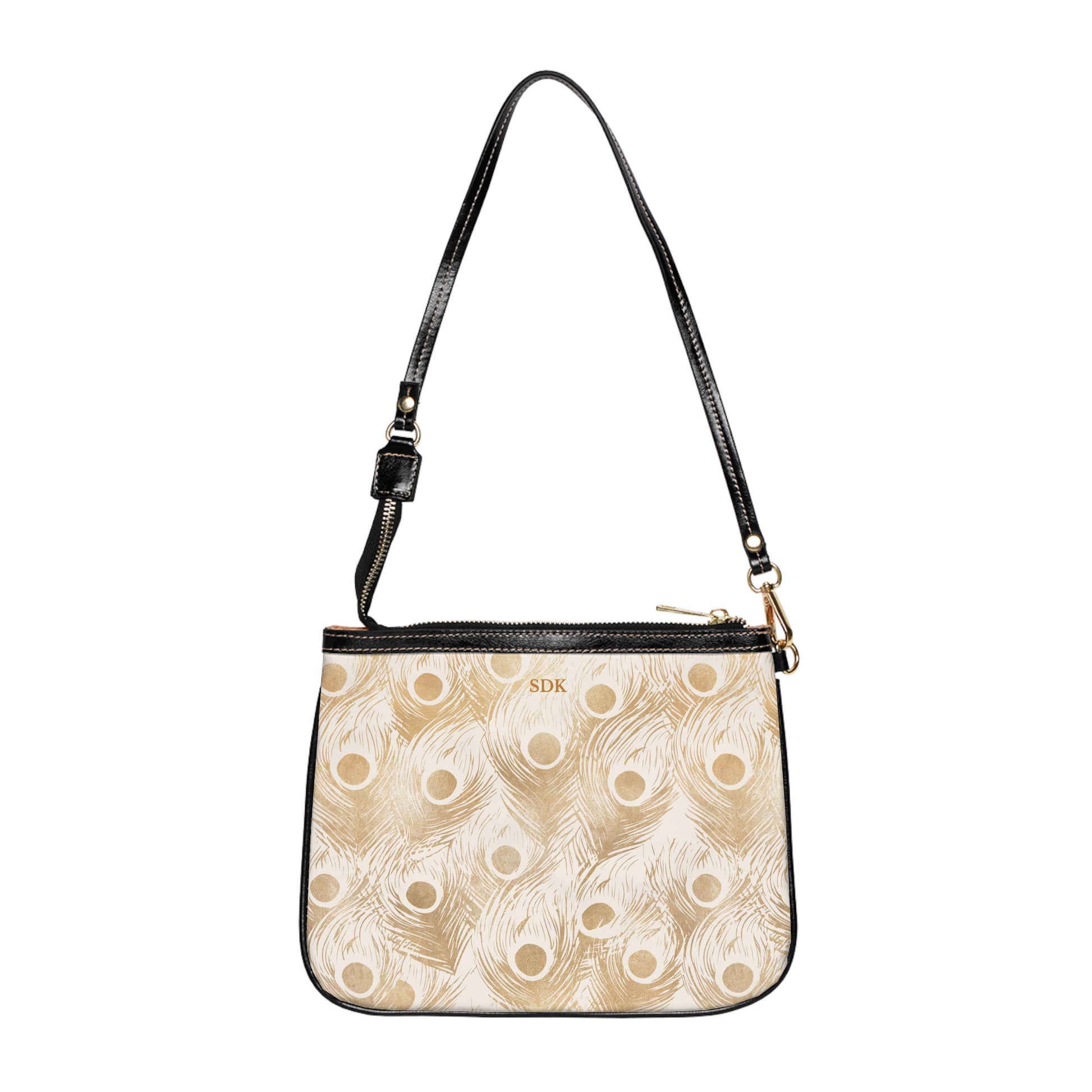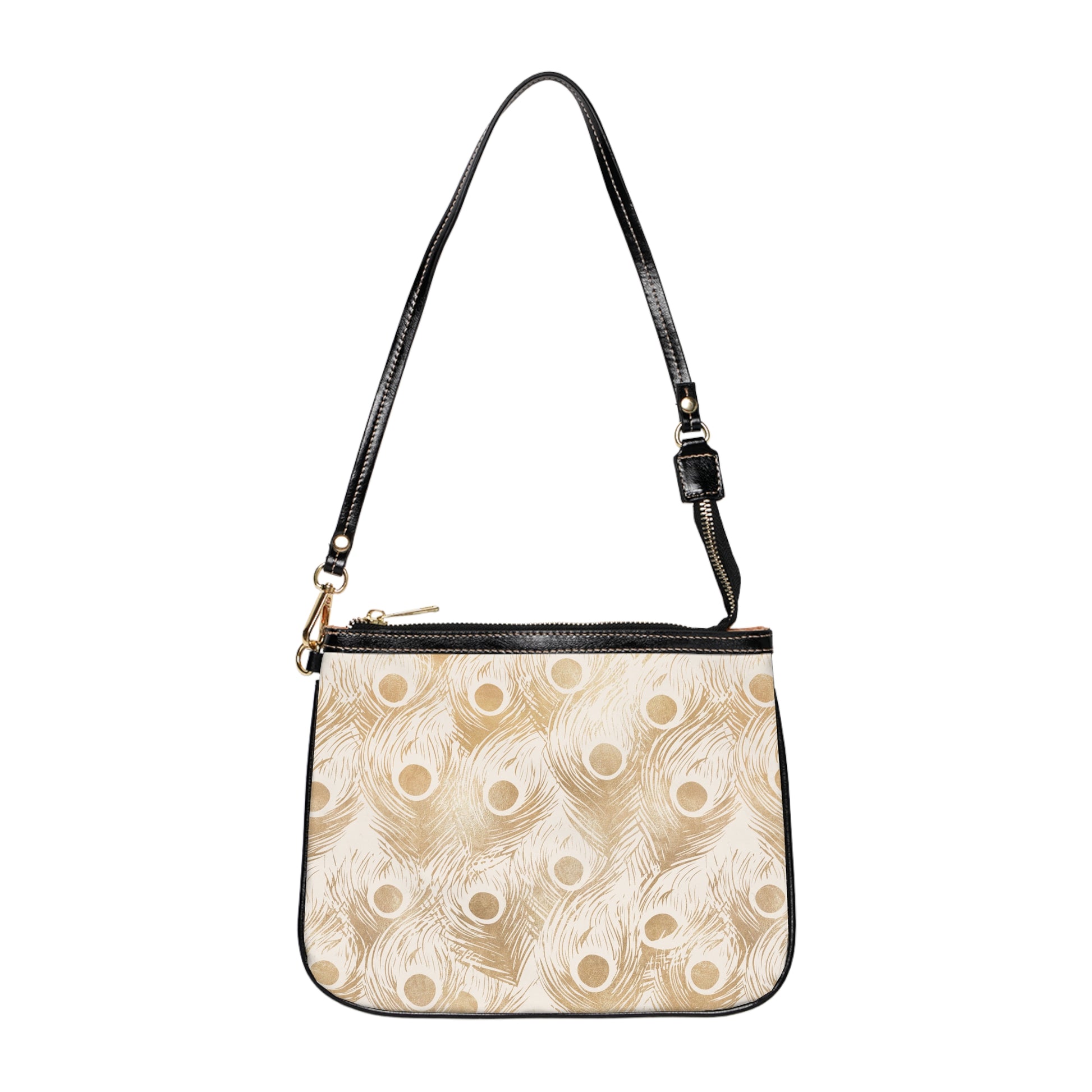 Designed with fashion and function in mind, the Golden Plume Small Shoulder Bag features two interior open pockets for essentials within a sleek, structured silhouette. Gold-toned zipper and hardware add a radiant finish, while the comfortable adjustable strap makes it effortlessly wearable from day to night.