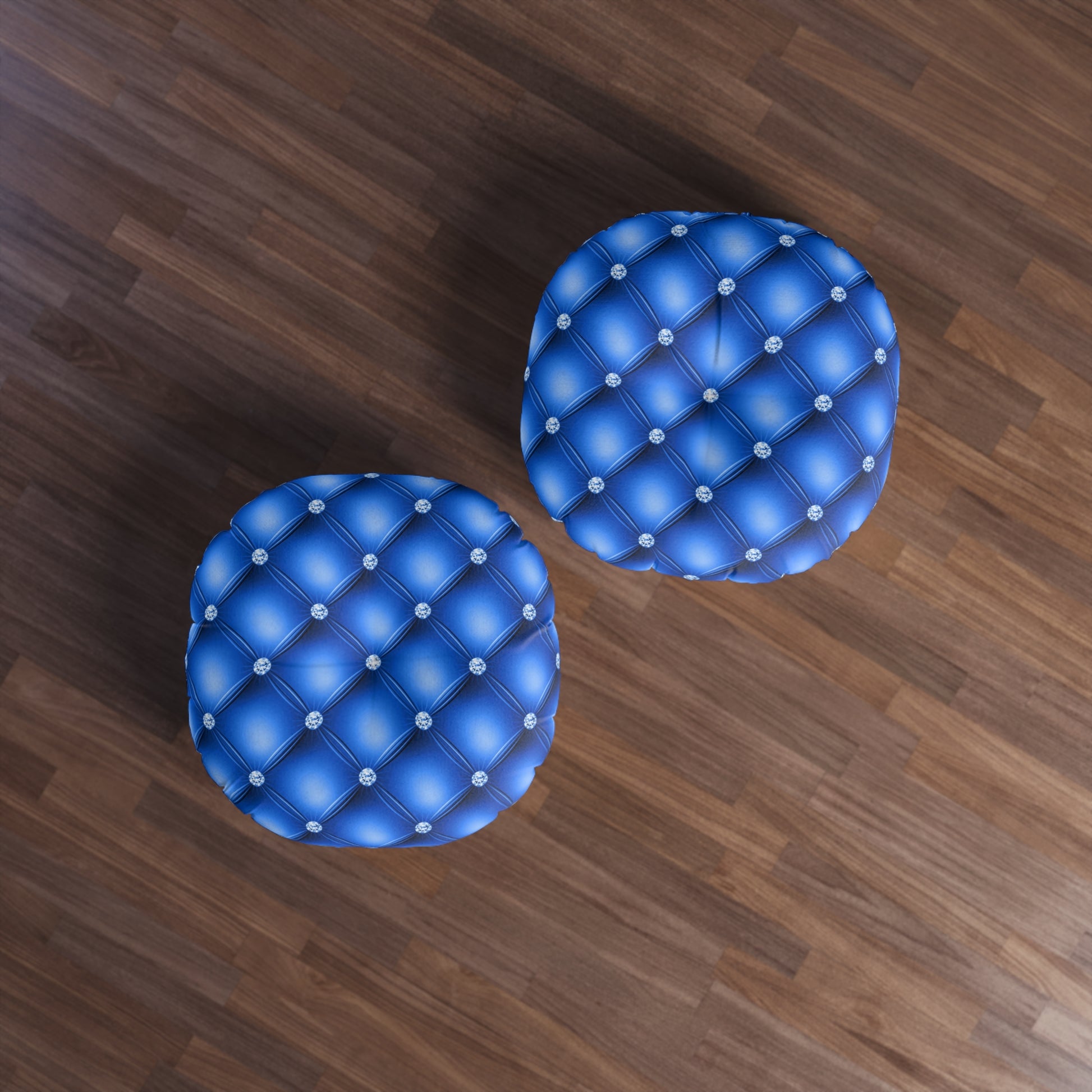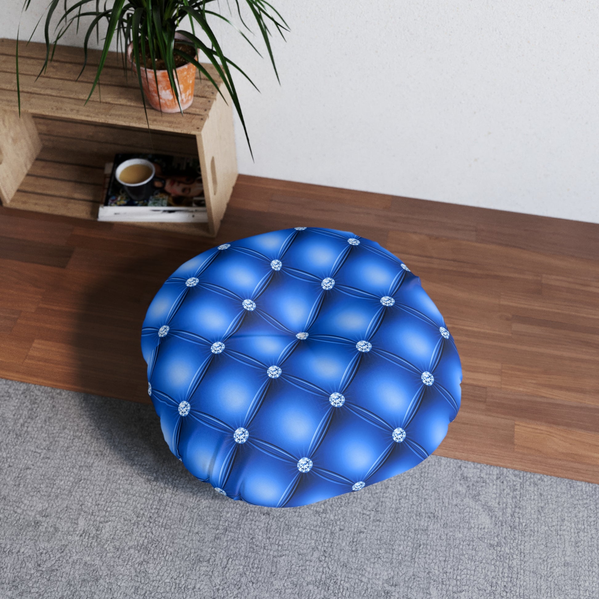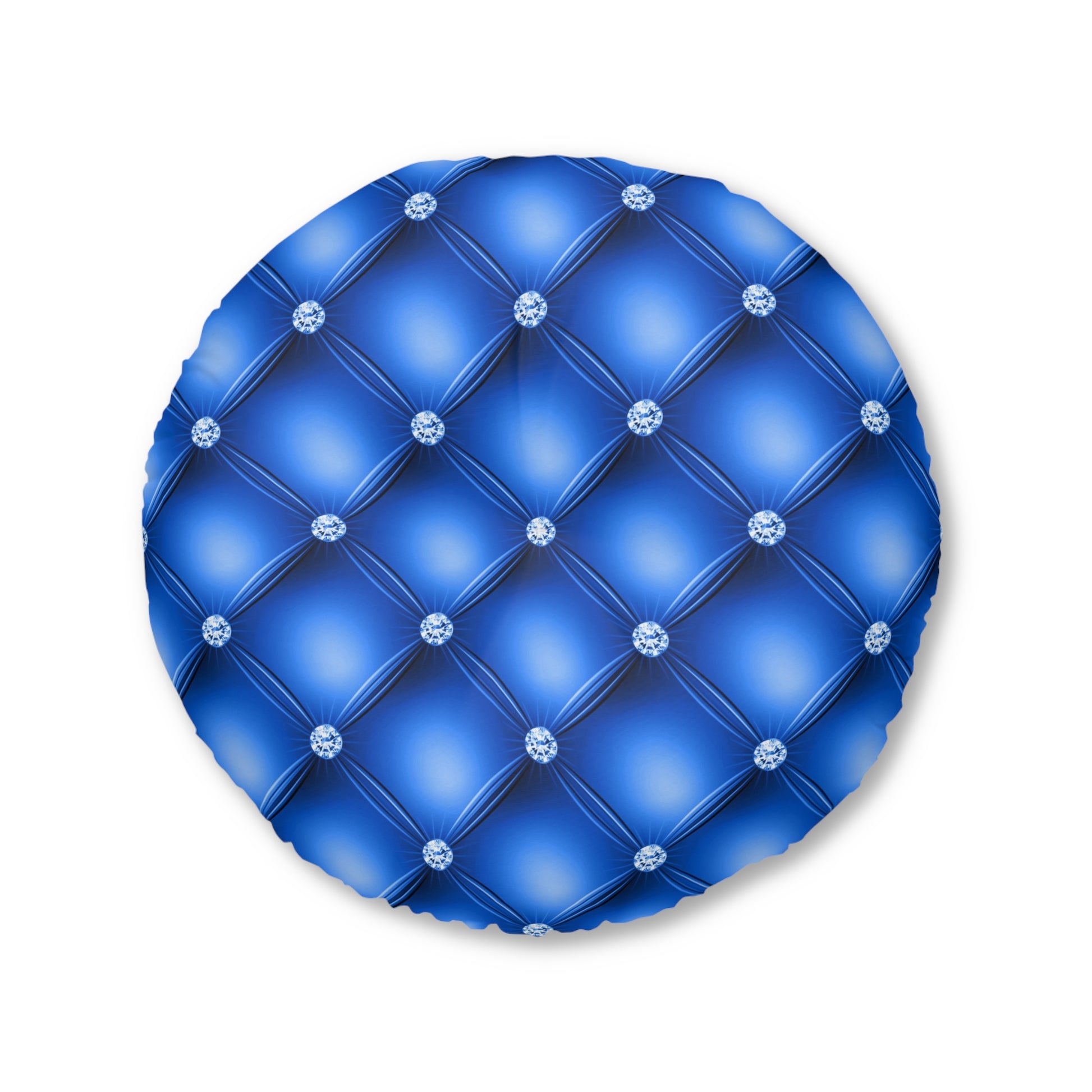 Sapphire Luxe | Blue Tufted Round Pillow with Diamond Accents – Regal Statement for Modern Glam Interiors