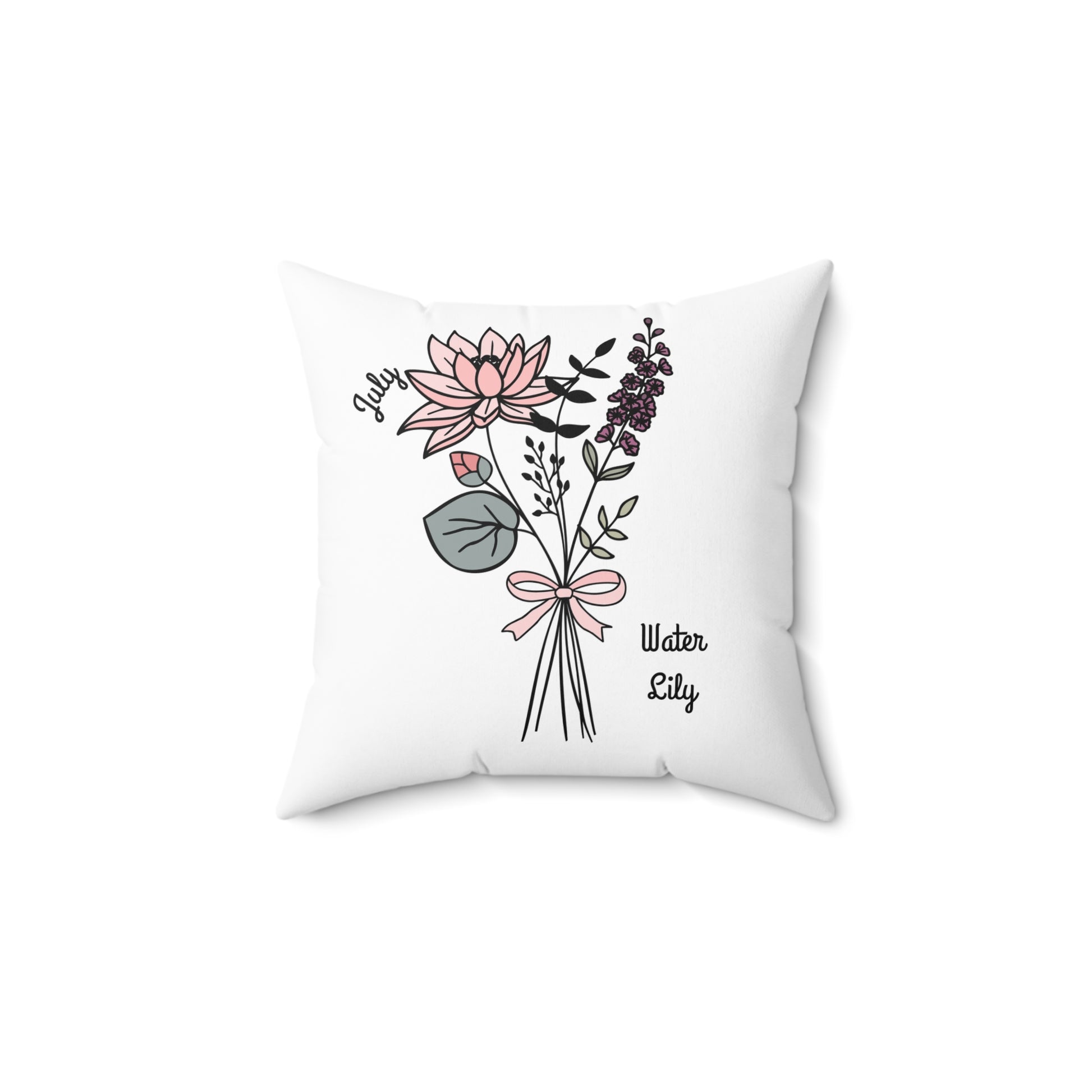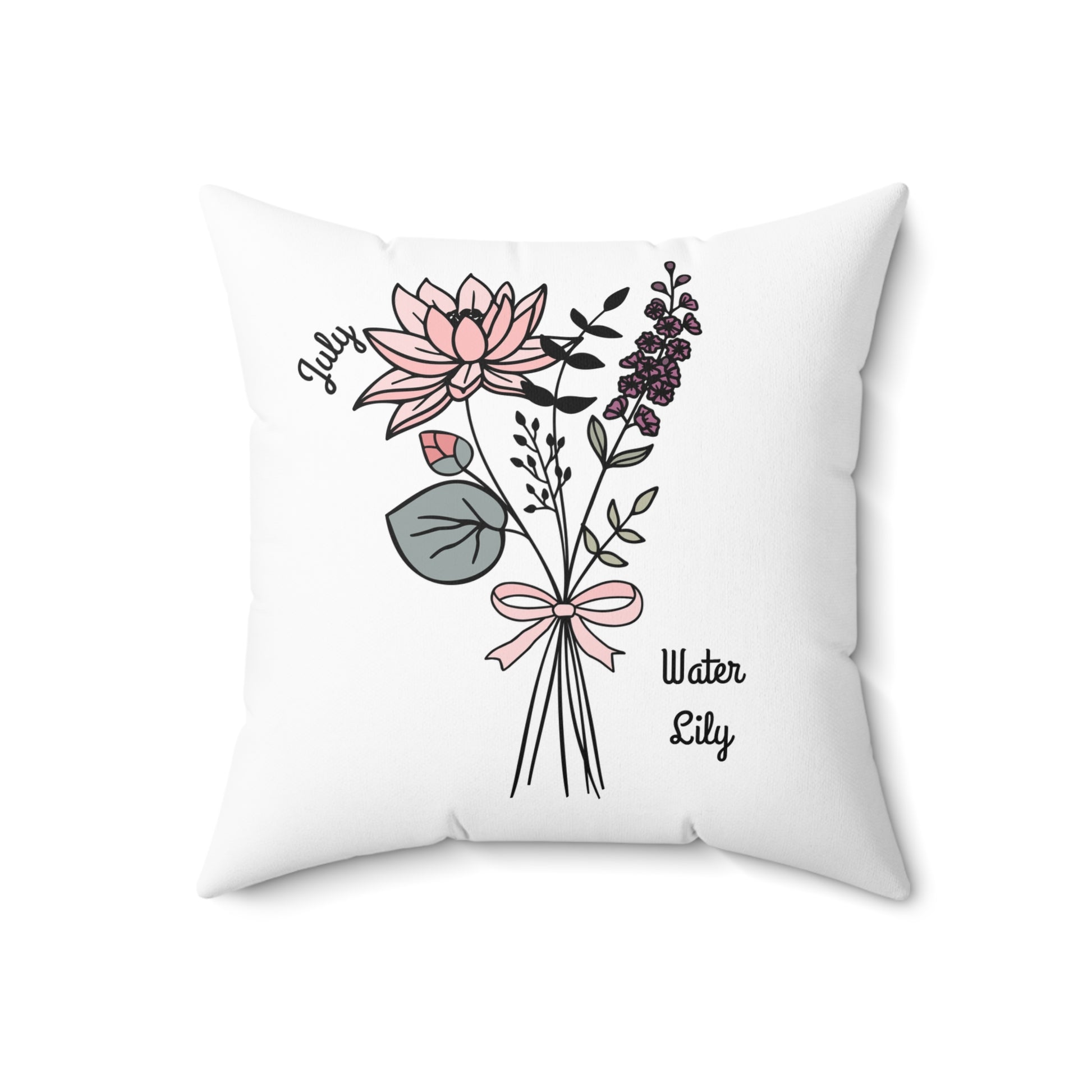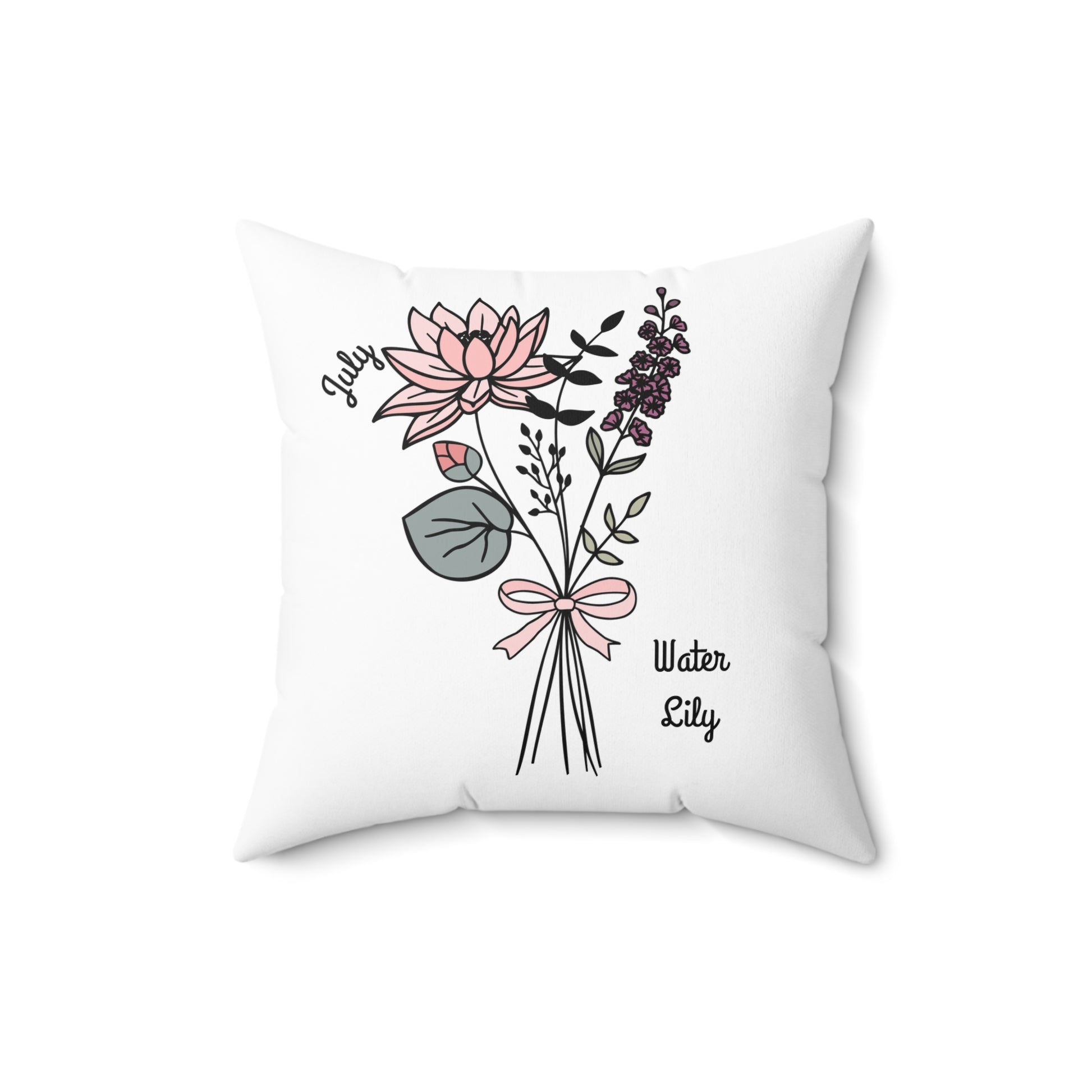 July Water Lily Birth Flower - Custom Spun Polyester Square Pillow – Stylish Double-Sided Home Décor Accent for a Personalized Touch