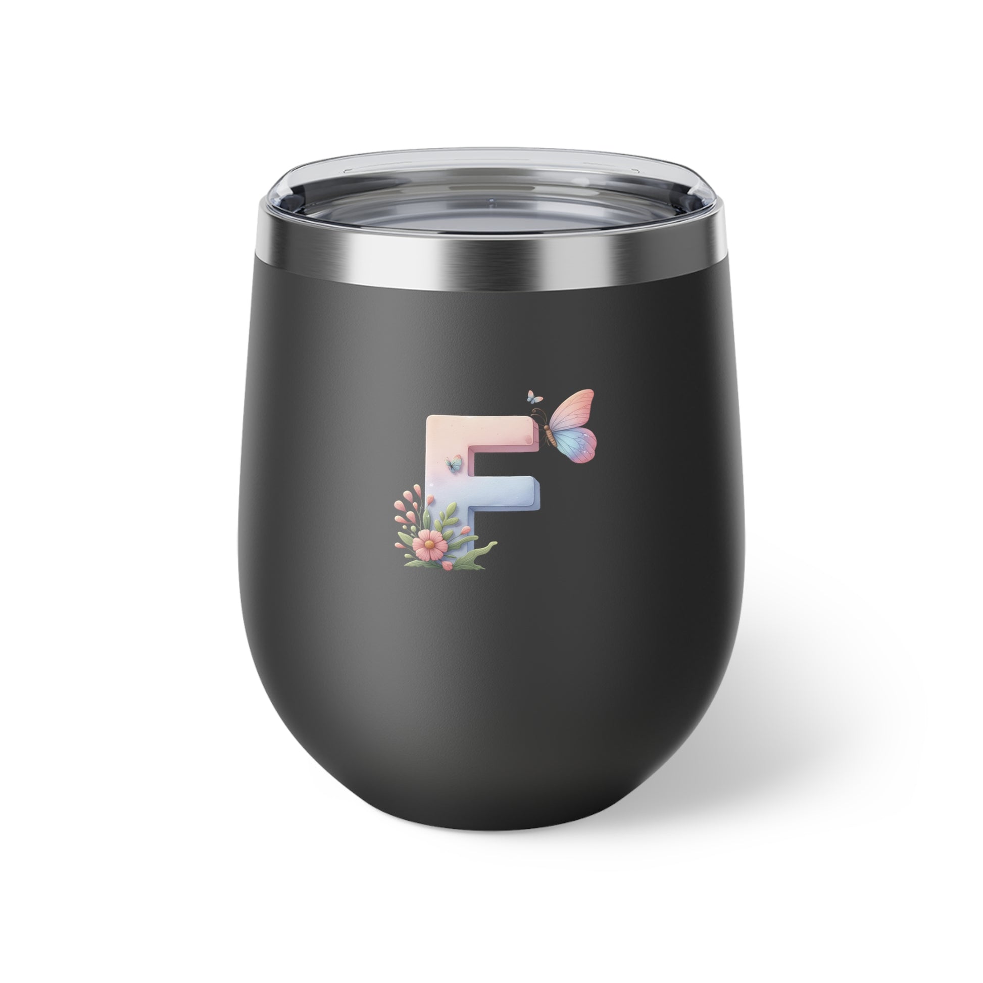 Letter F - Personalized Whimsical Butterfly Copper Vacuum Insulated Cup, 12 oz – Perfect for Weddings