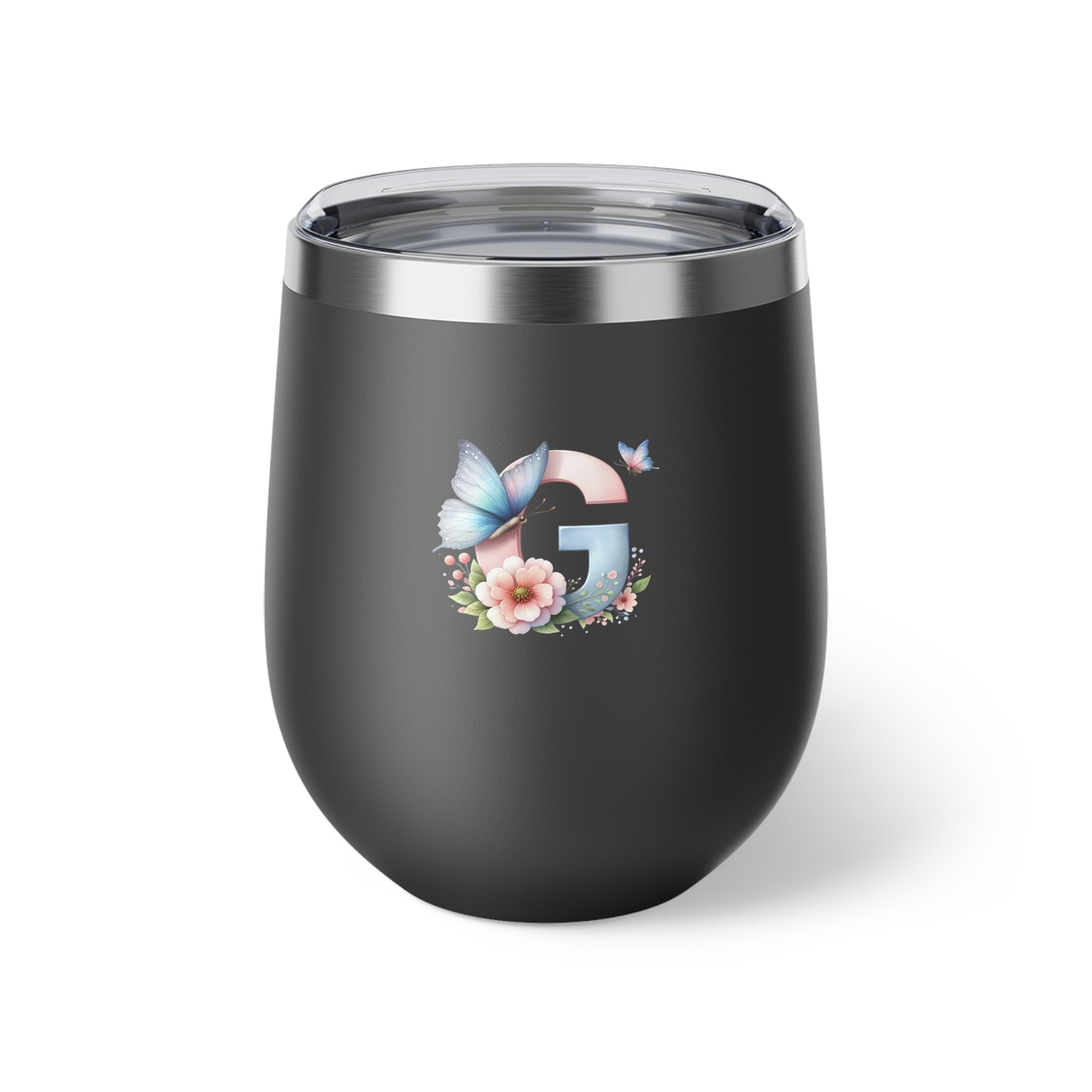 Letter G - Personalized Whimsical Butterfly Copper Vacuum Insulated Cup, 12 oz – Perfect for Weddings