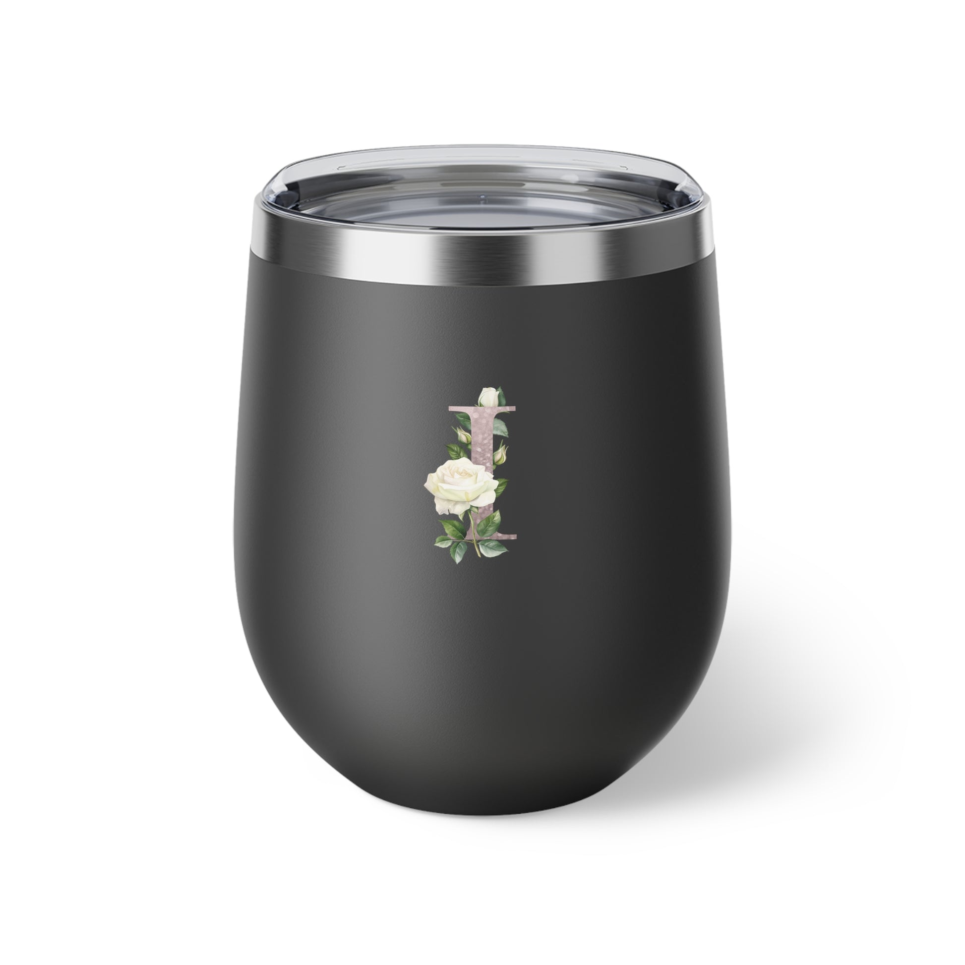 Letter I - Personalized Romantic White Rose Copper Vacuum Insulated Cup, 12 oz – Perfect for Weddings