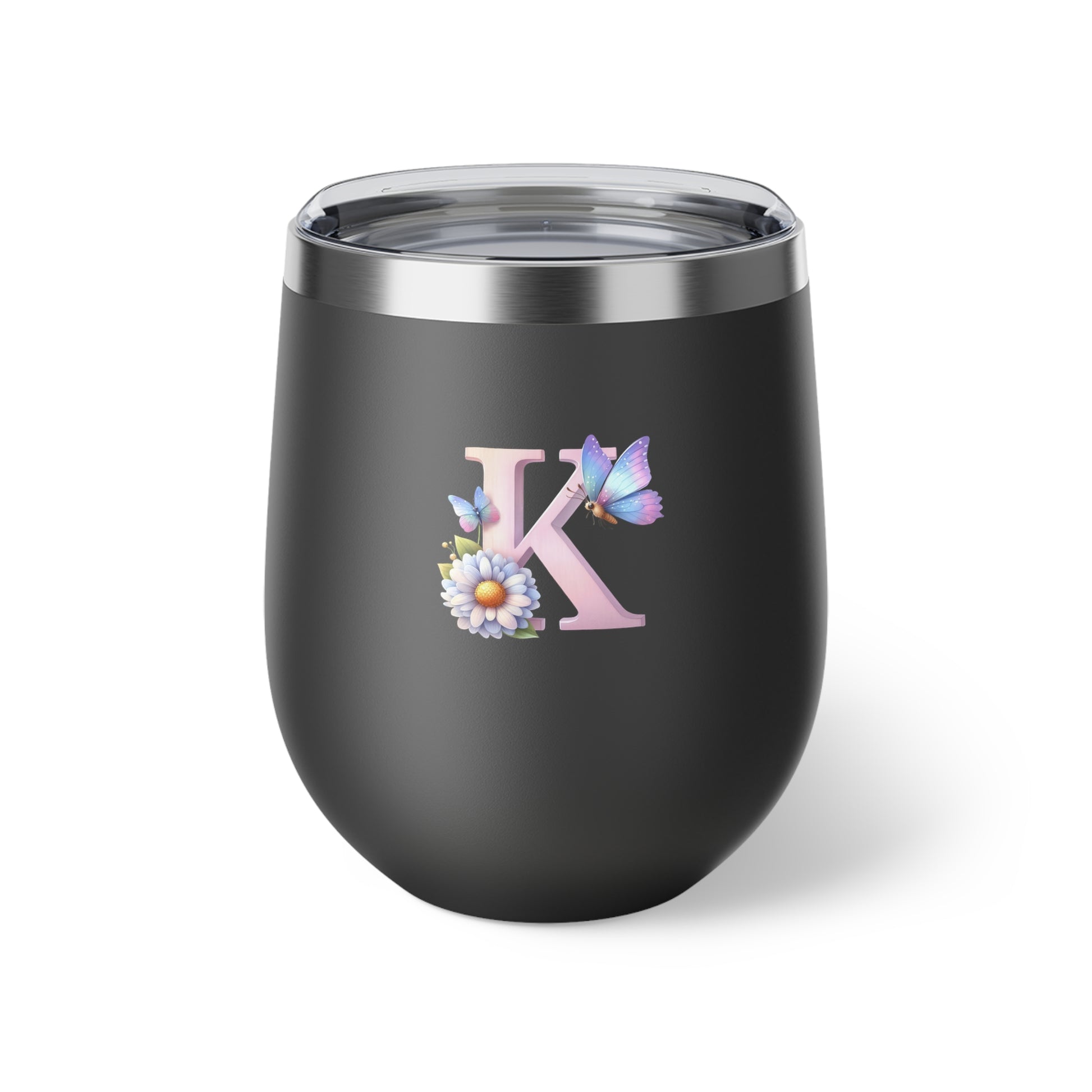 Letter K - Personalized Whimsical Butterfly Copper Vacuum Insulated Cup, 12 oz – Perfect for Weddings