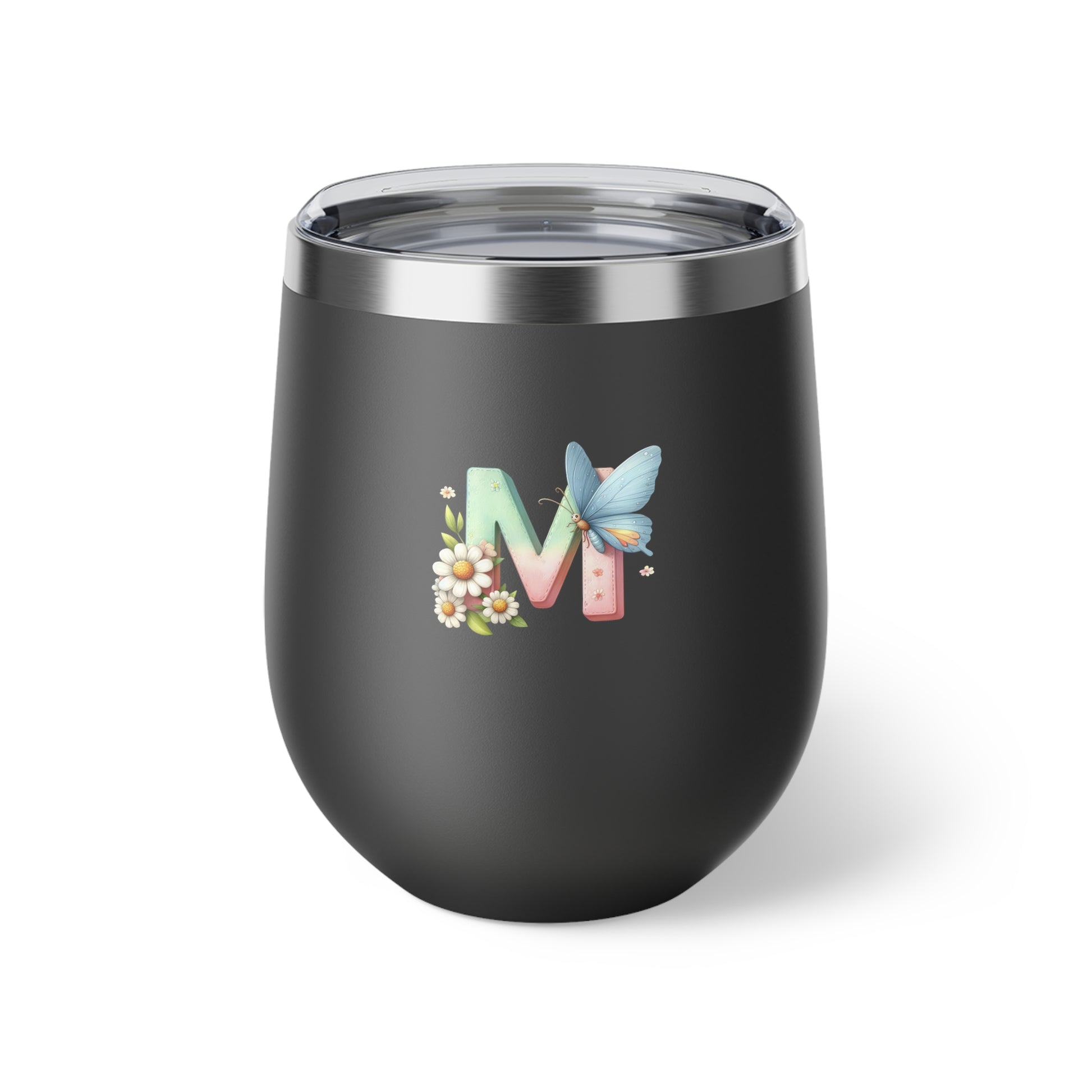 Letter M - Personalized Whimsical Butterfly Copper Vacuum Insulated Cup, 12 oz – Perfect for Weddings