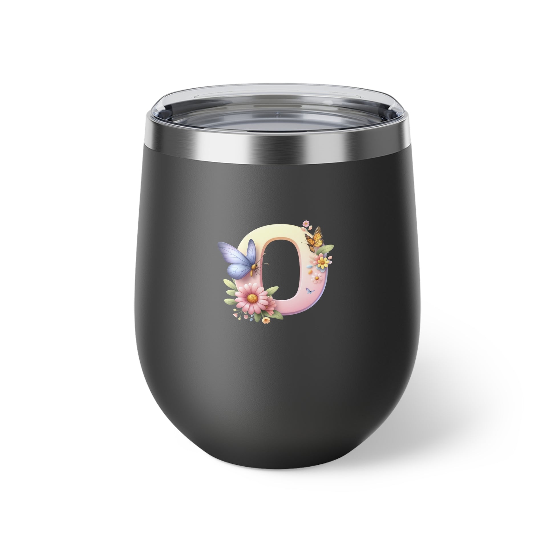 Letter O - Personalized Whimsical Butterfly Copper Vacuum Insulated Cup, 12 oz – Perfect for Weddings
