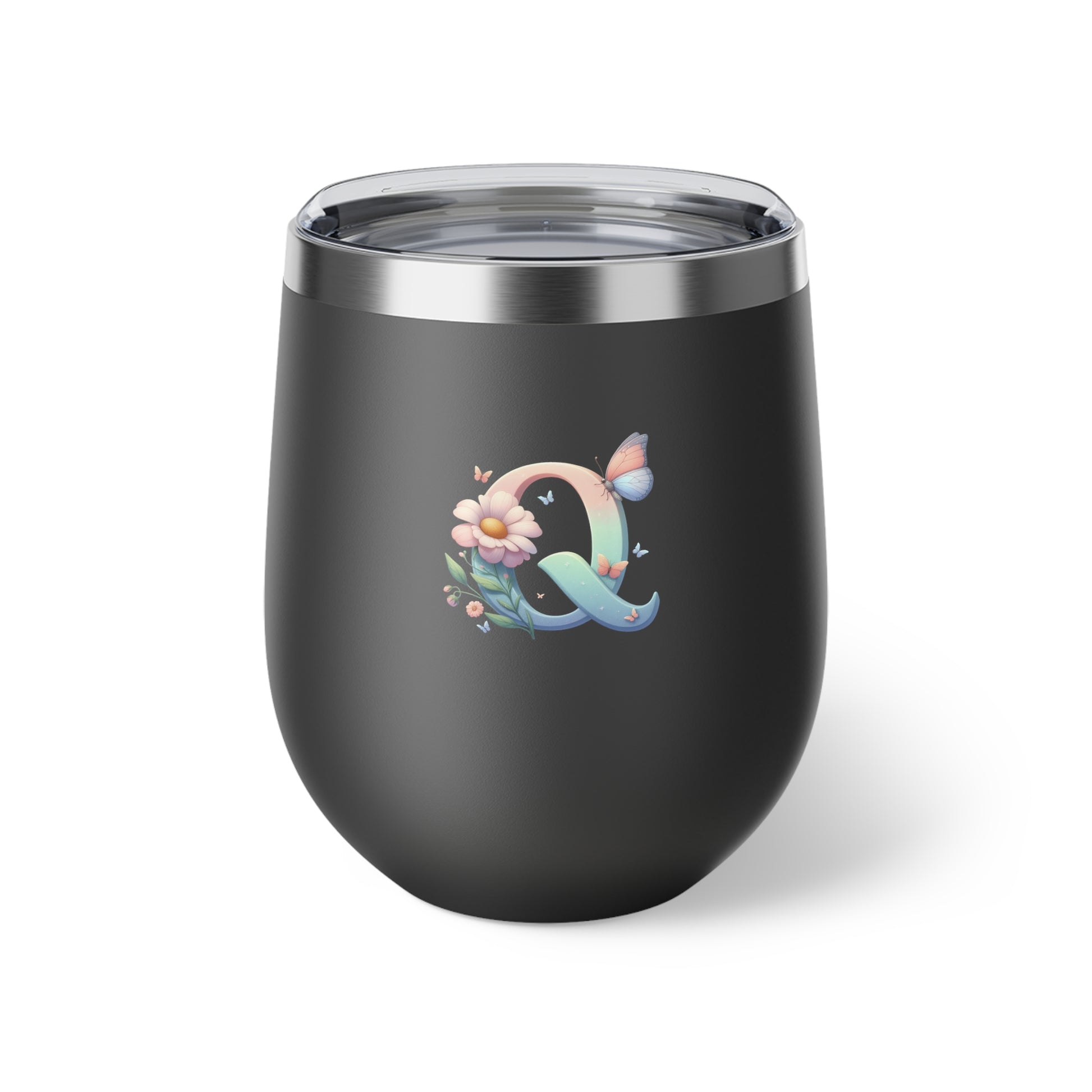 Letter Q - Personalized Whimsical Butterfly Copper Vacuum Insulated Cup, 12 oz – Perfect for Weddings