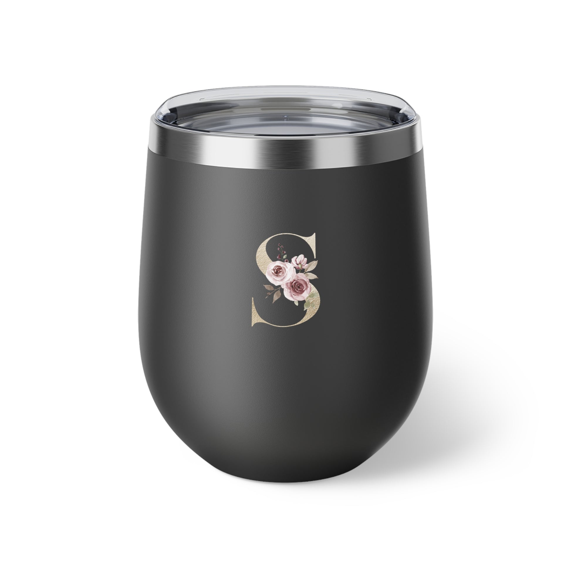 Letter S - Personalized Elegant Pink Rose Copper Vacuum Insulated Cup, 12 oz – Perfect for Weddings