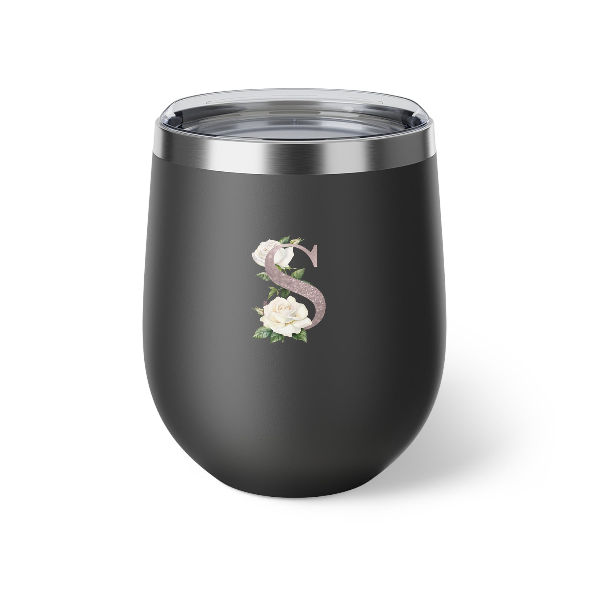 Letter S - Personalized Romantic White Rose Copper Vacuum Insulated Cup, 12 oz – Perfect for Weddings