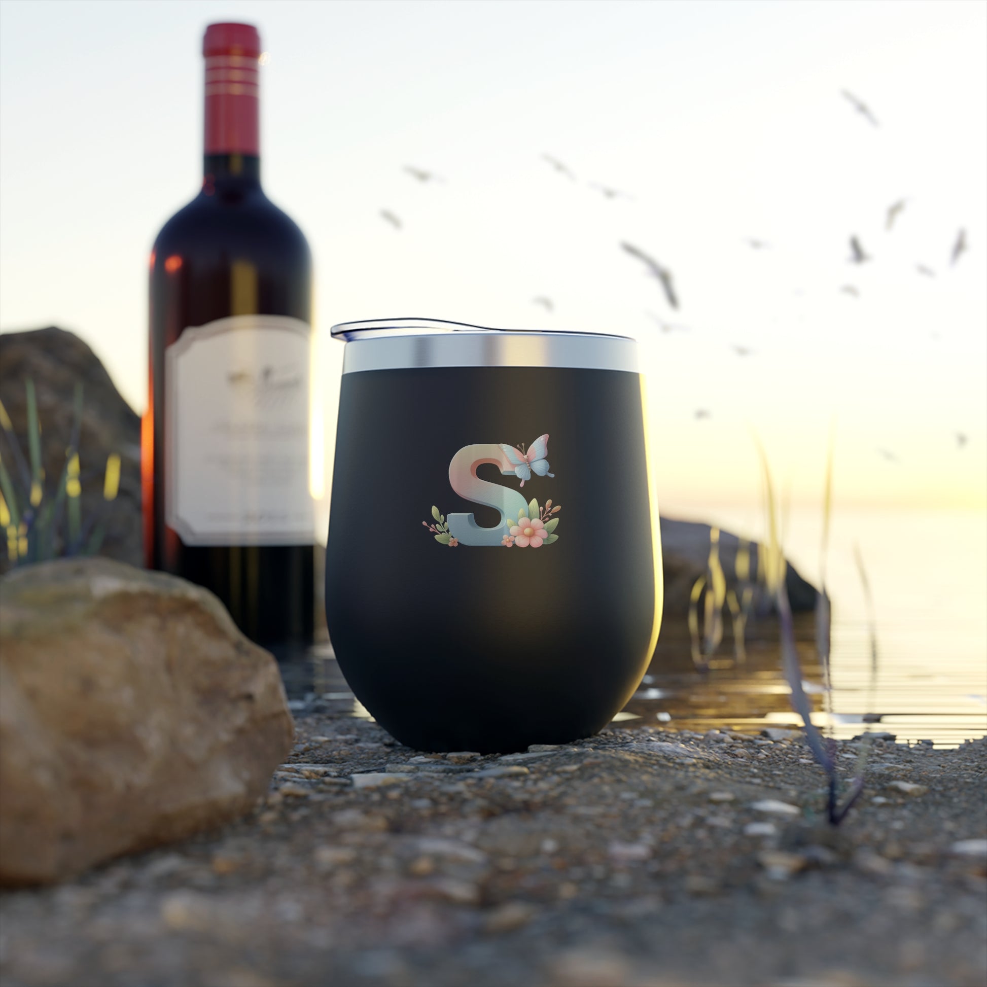 Letter S - Personalized Whimsical Butterfly Copper Vacuum Insulated Cup, 12 oz – Perfect for Weddings