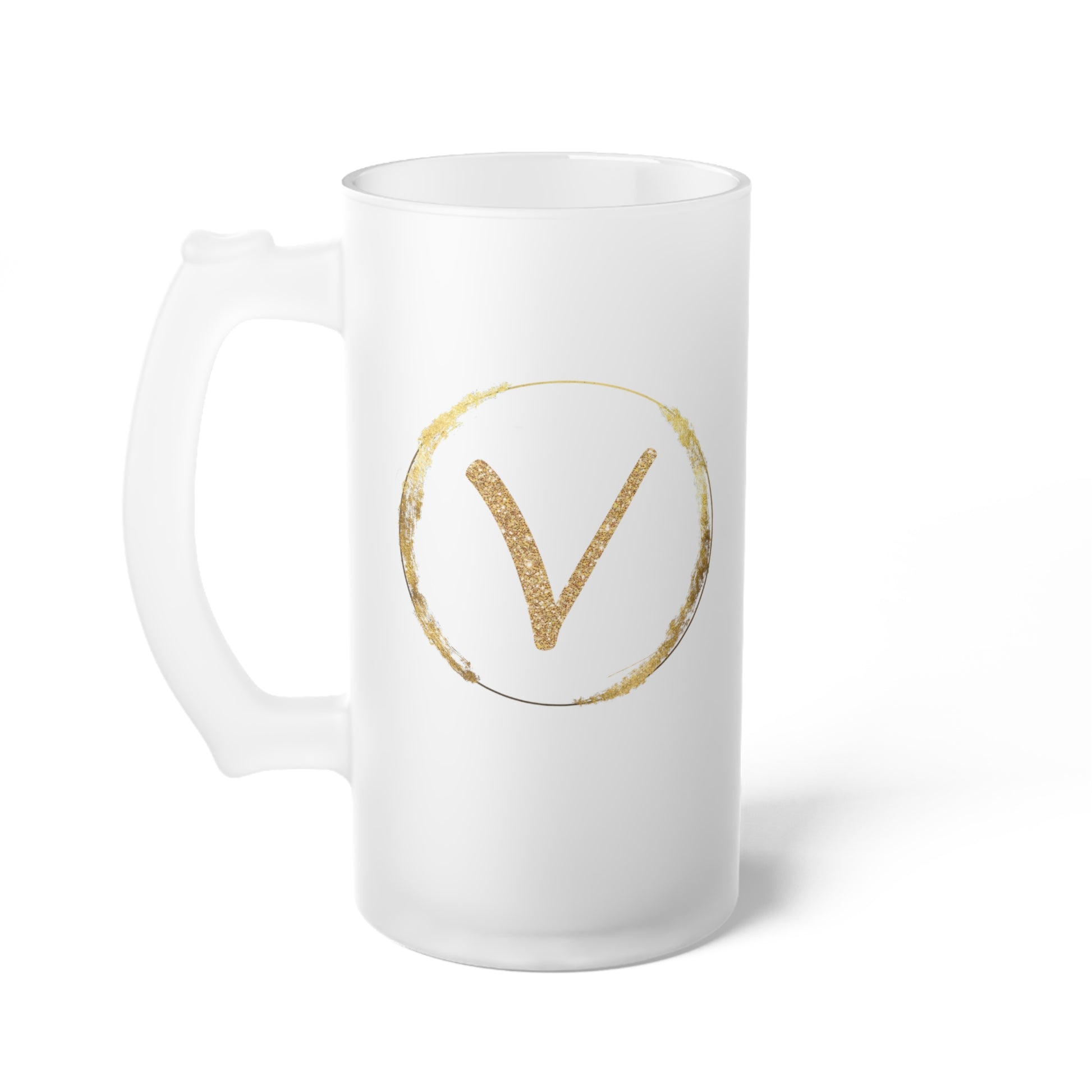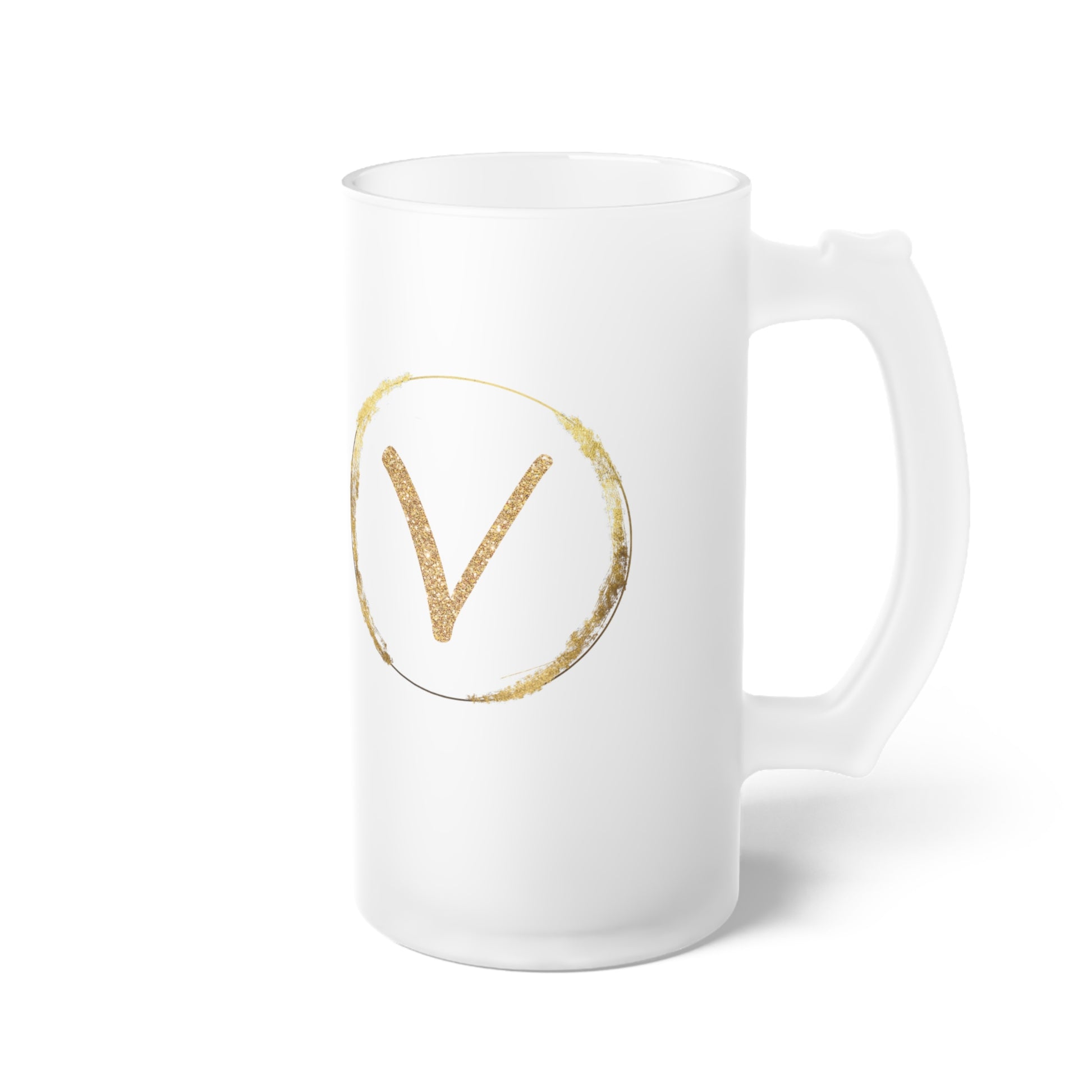 Letter V - Personalized 16oz Frosted Glass Mug – Stylish, Microwave & Dishwasher Safe Drinkware