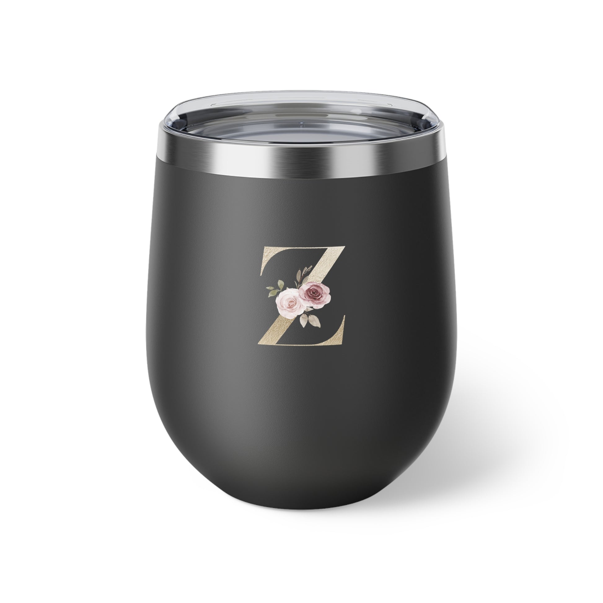 Letter Z - Personalized Elegant Pink Rose Copper Vacuum Insulated Cup, 12 oz – Perfect for Weddings