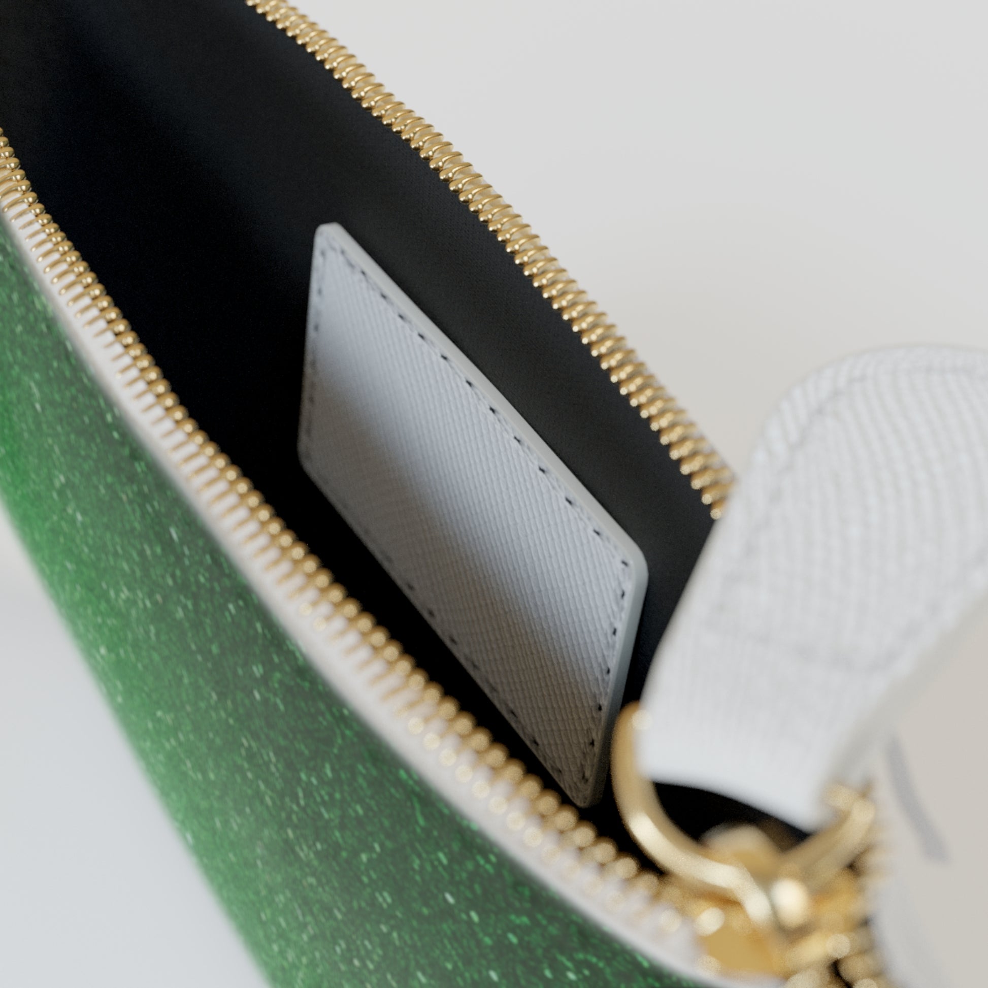 Capture the light wherever you go with the Limited Edition Emerald Enchantment Mini Clutch, a luminous statement piece that radiates confidence, grace, and quiet power. Cloaked in a shimmering emerald finish, it reflects every movement with the subtle magic of starlight — sophisticated, modern, and endlessly captivating.
