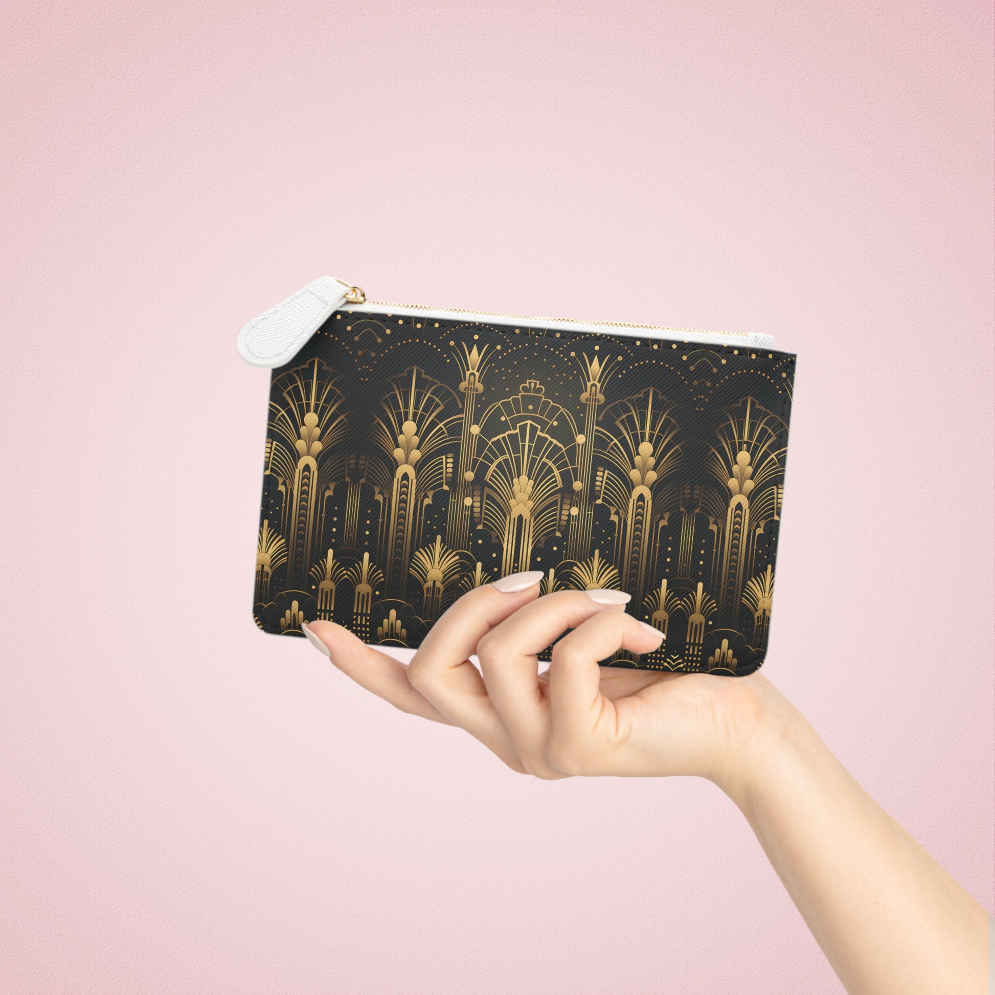Finished with a durable gold-toned zipper and designed with a compact interior pocket for essentials like cards or keys, the Gatsby Opulence Mini Clutch balances style, function, and exclusivity. Whether carried as a signature evening piece or gifted as a thoughtful luxury treasure, this clutch embodies refined opulence and timeless allure.
