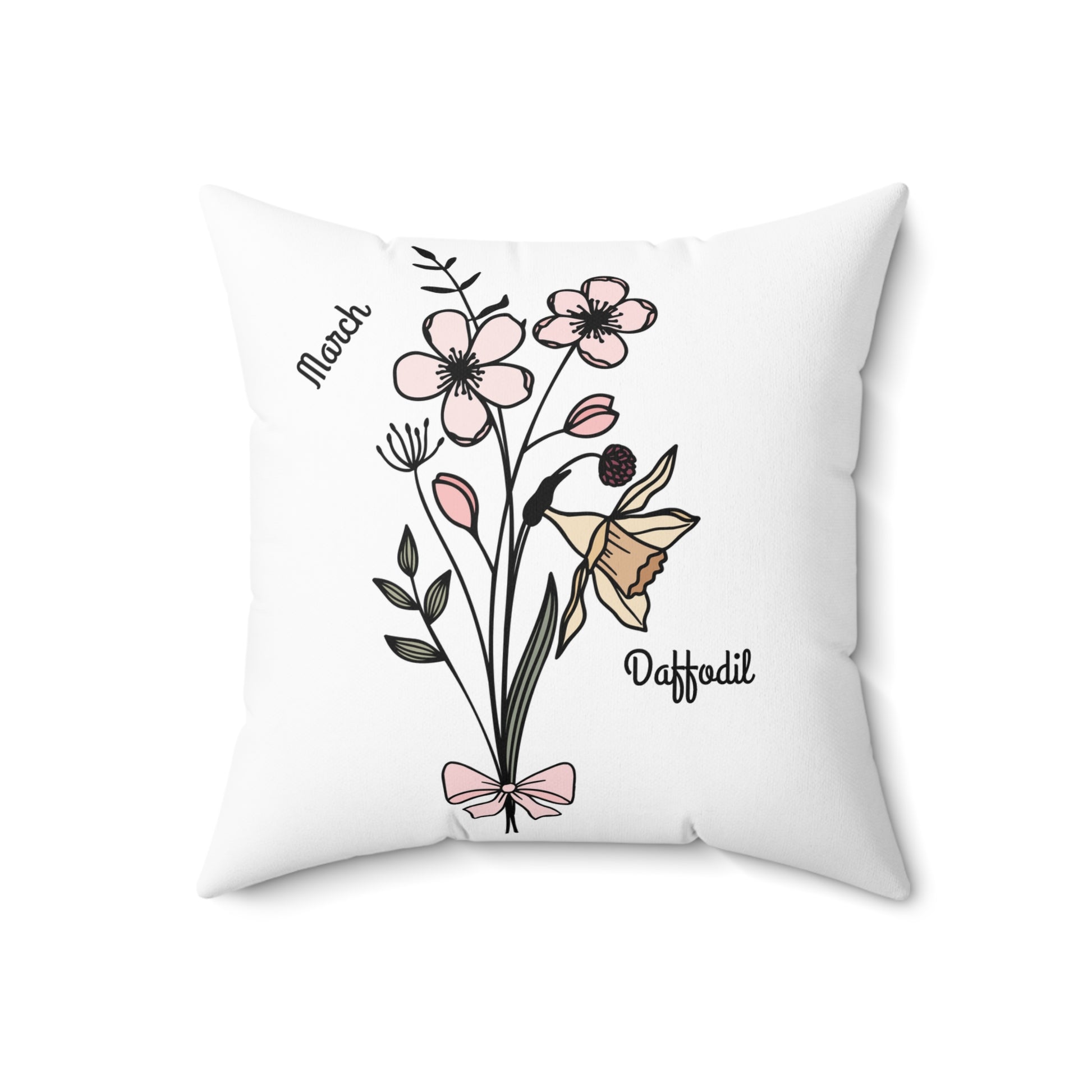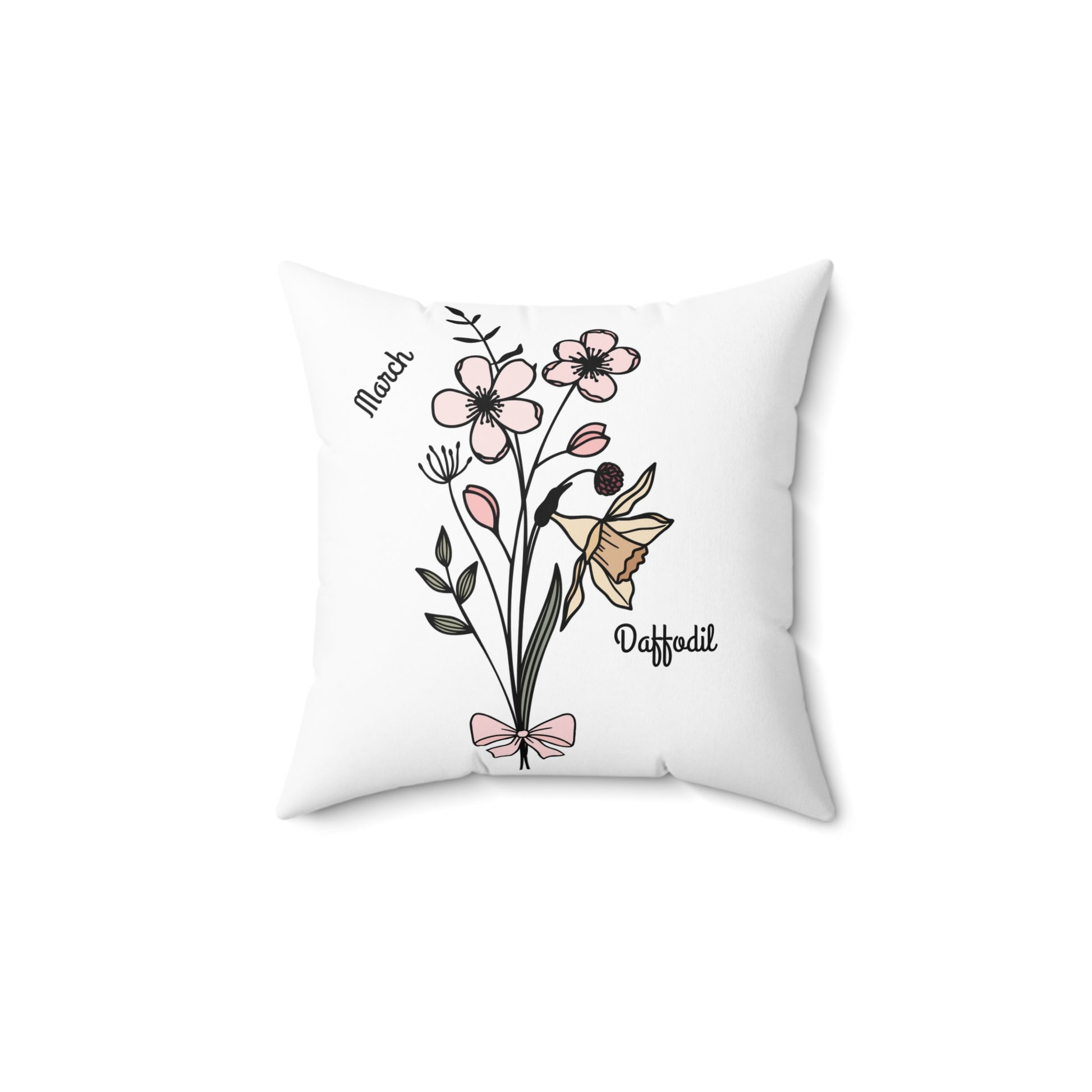March Daffodil Birth Flower - Custom Spun Polyester Square Pillow – Stylish Double-Sided Home Décor Accent for a Personalized Touch