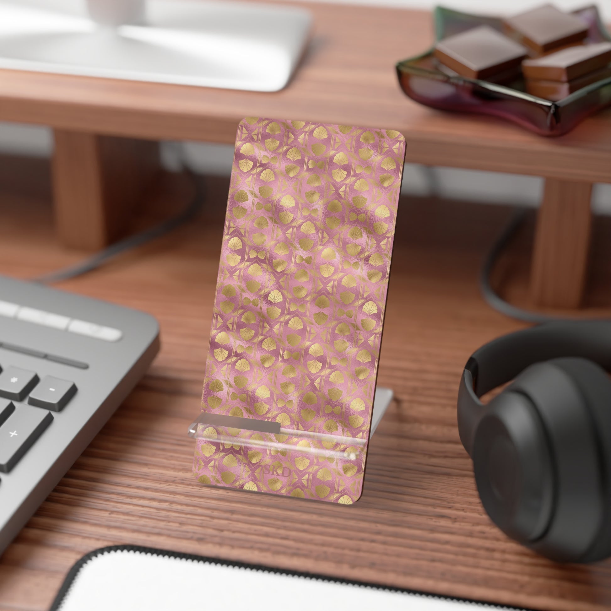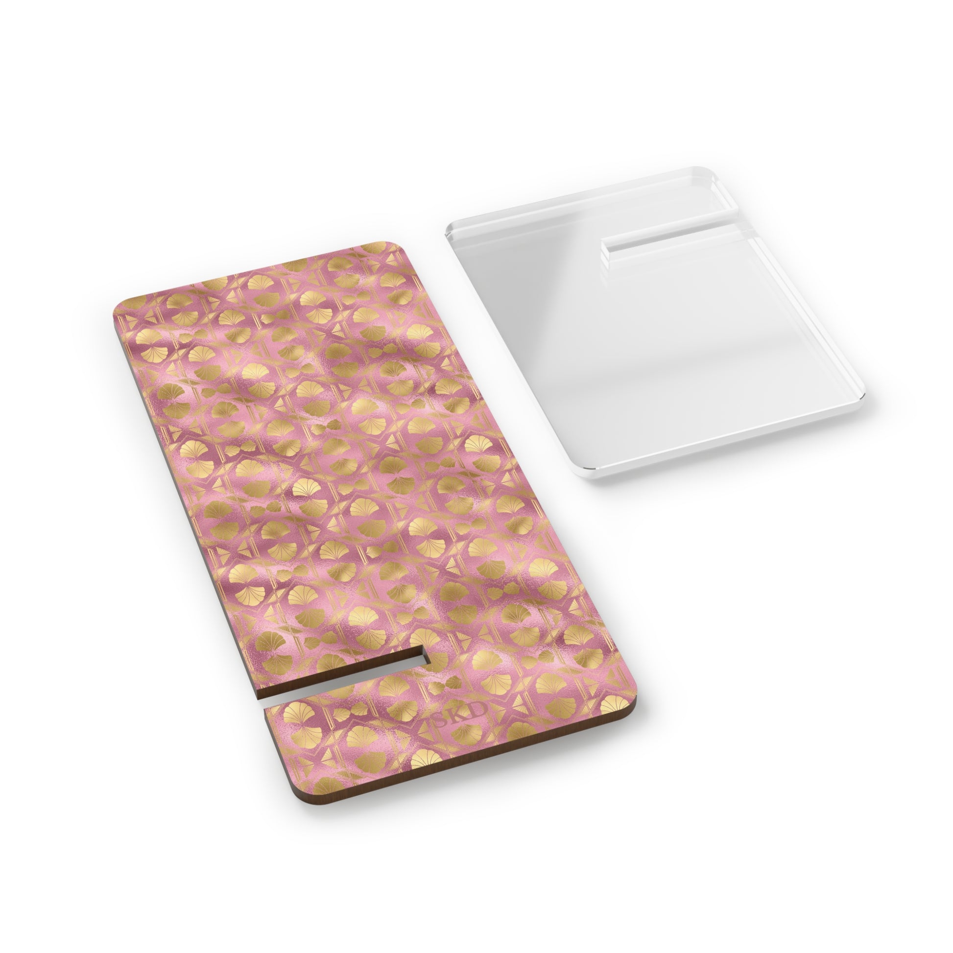 Collector's Vault: Blush Horizon | Soft, Pastel Pink & Gold Smartphone Display Stand | Desk Organizer, Phone Holder, Unique Gift, Home Decor, Office Accessory