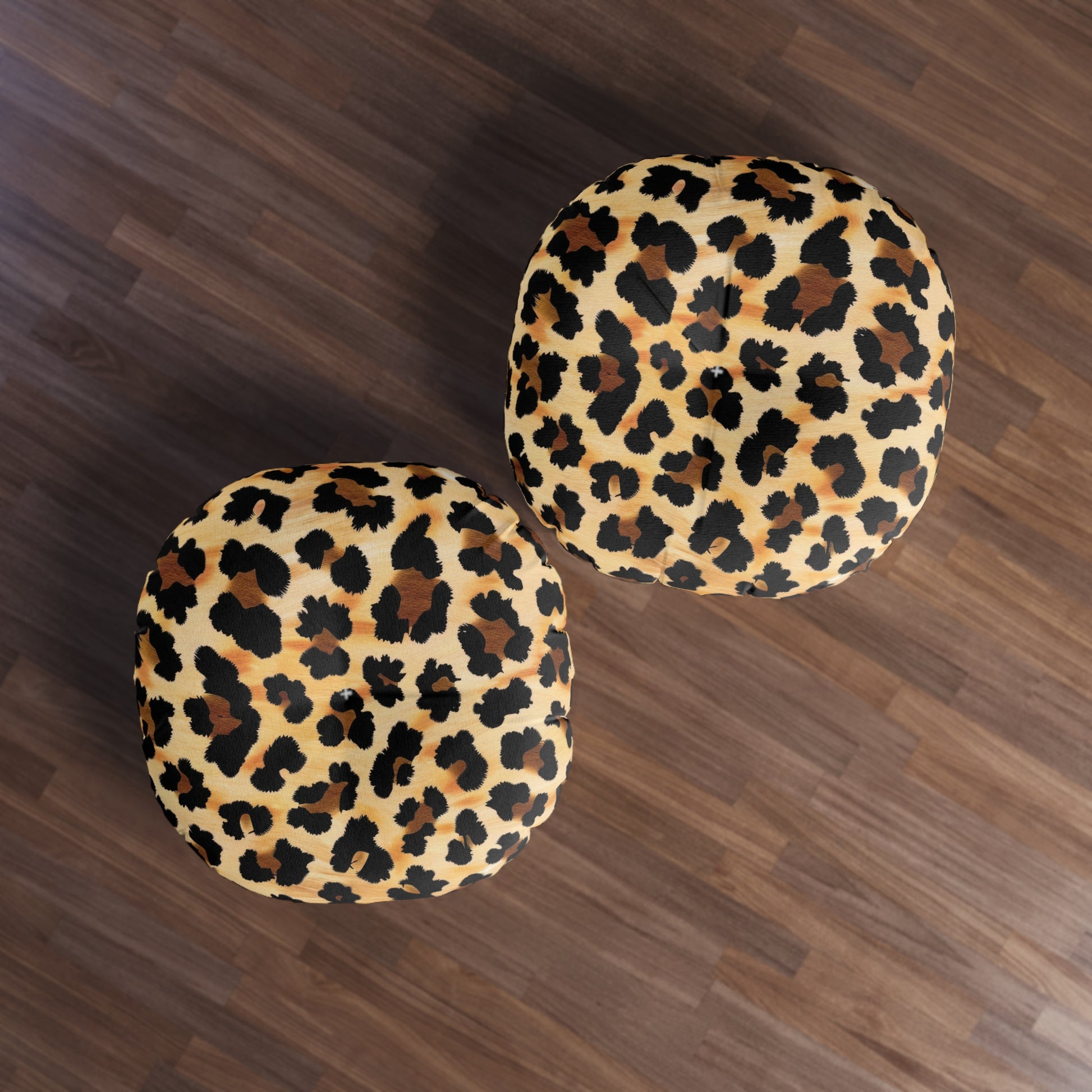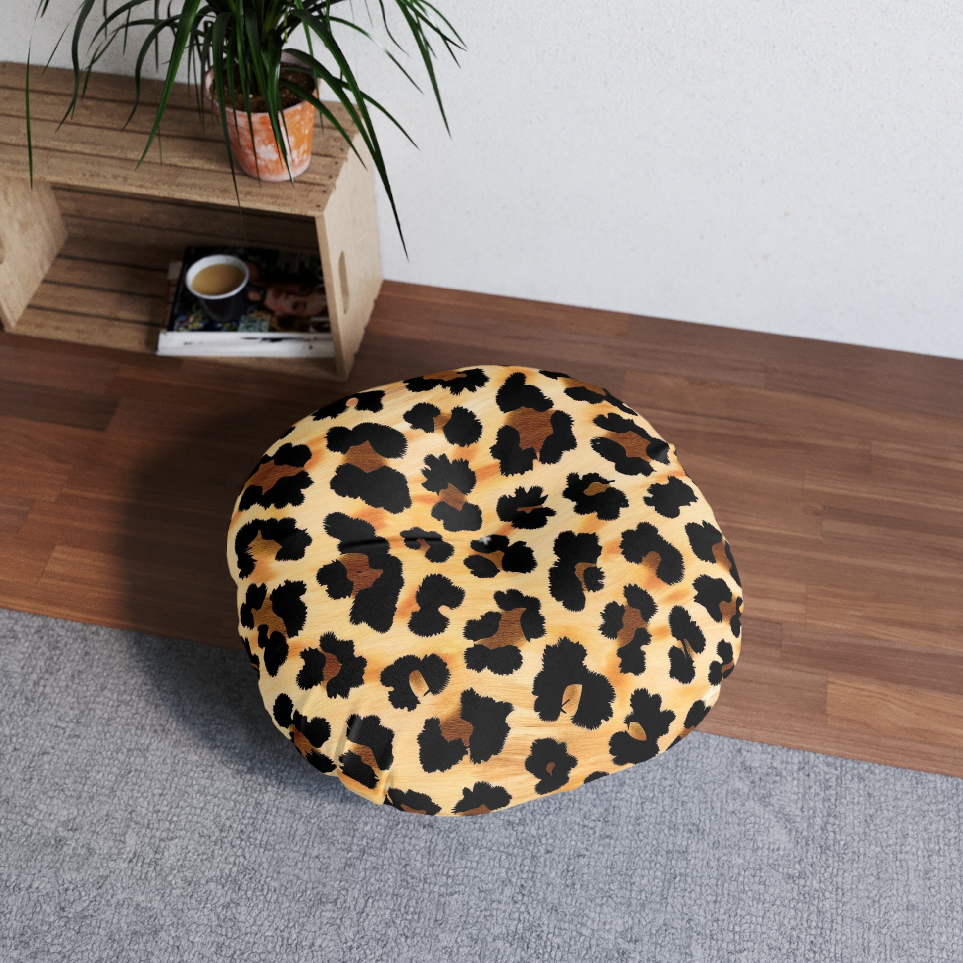 Leopard Print Round Tufted Floor Pillow | Bold Safari Style Meets Plush Comfort