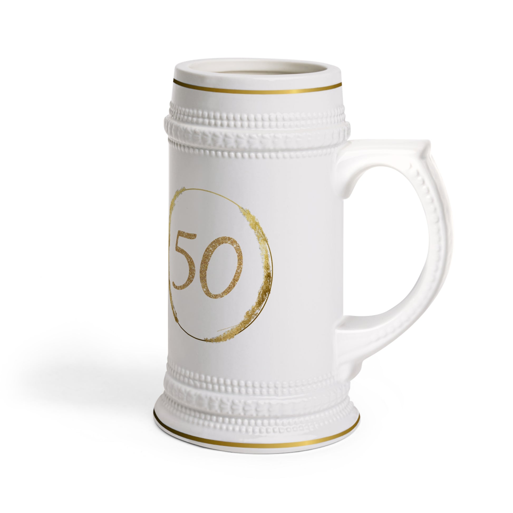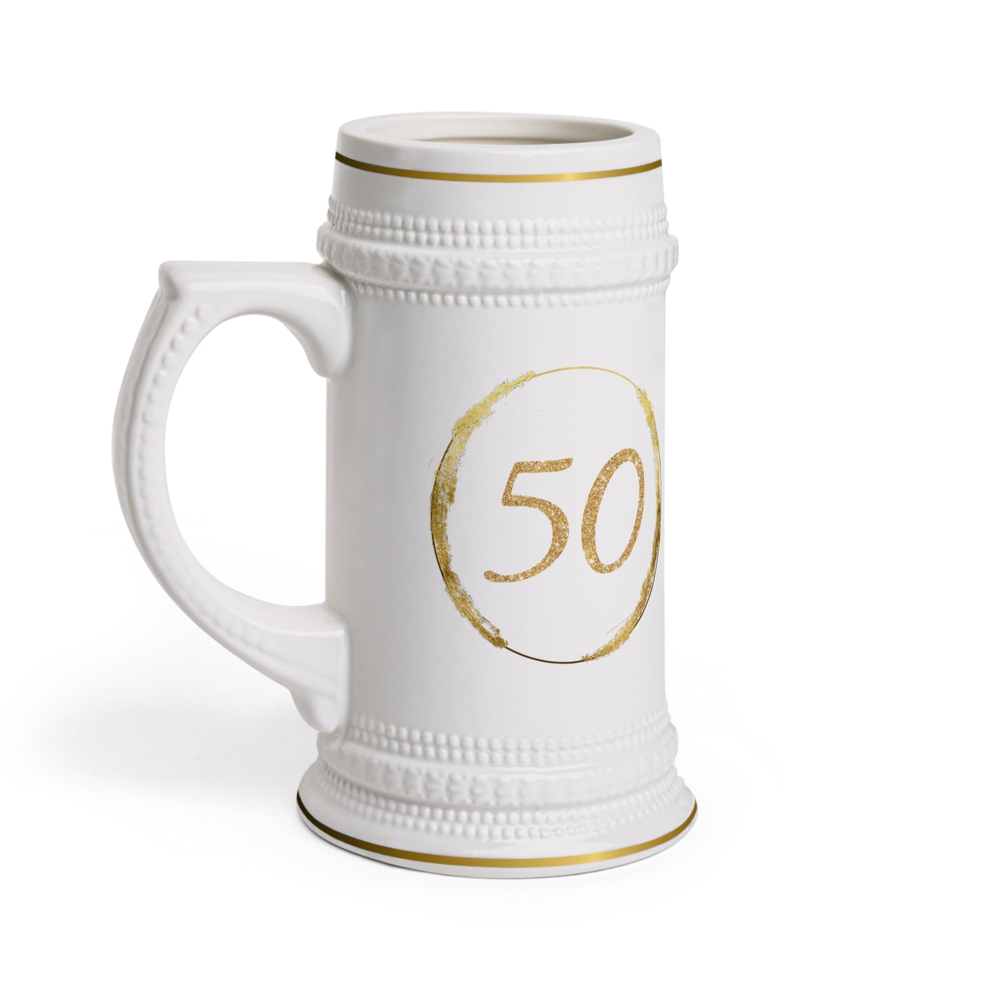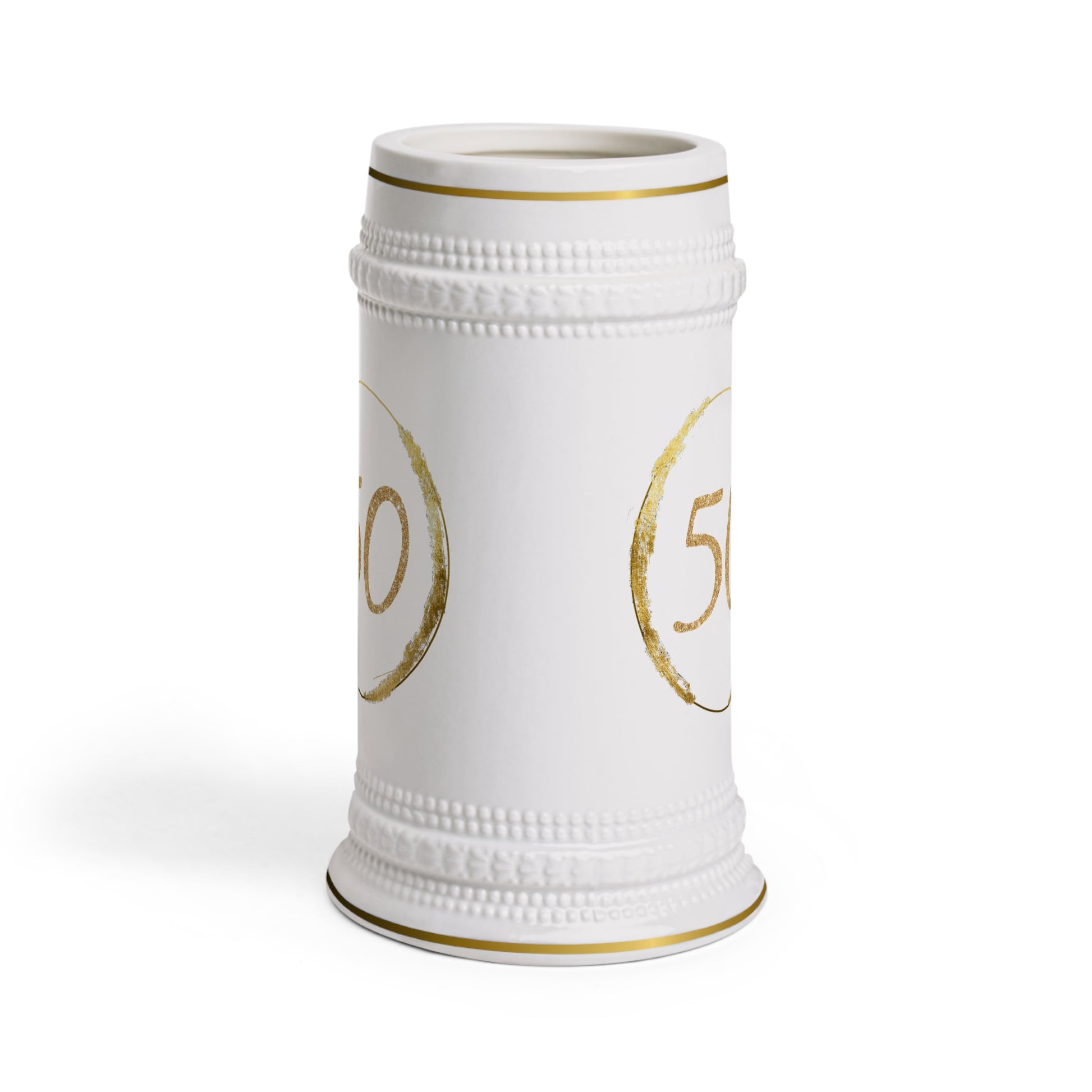 50TH Anniversary - Personalized Beer Stein Mug – Custom Initial Ceramic Stein with Gold Accents | Perfect Gift for Beer Lovers