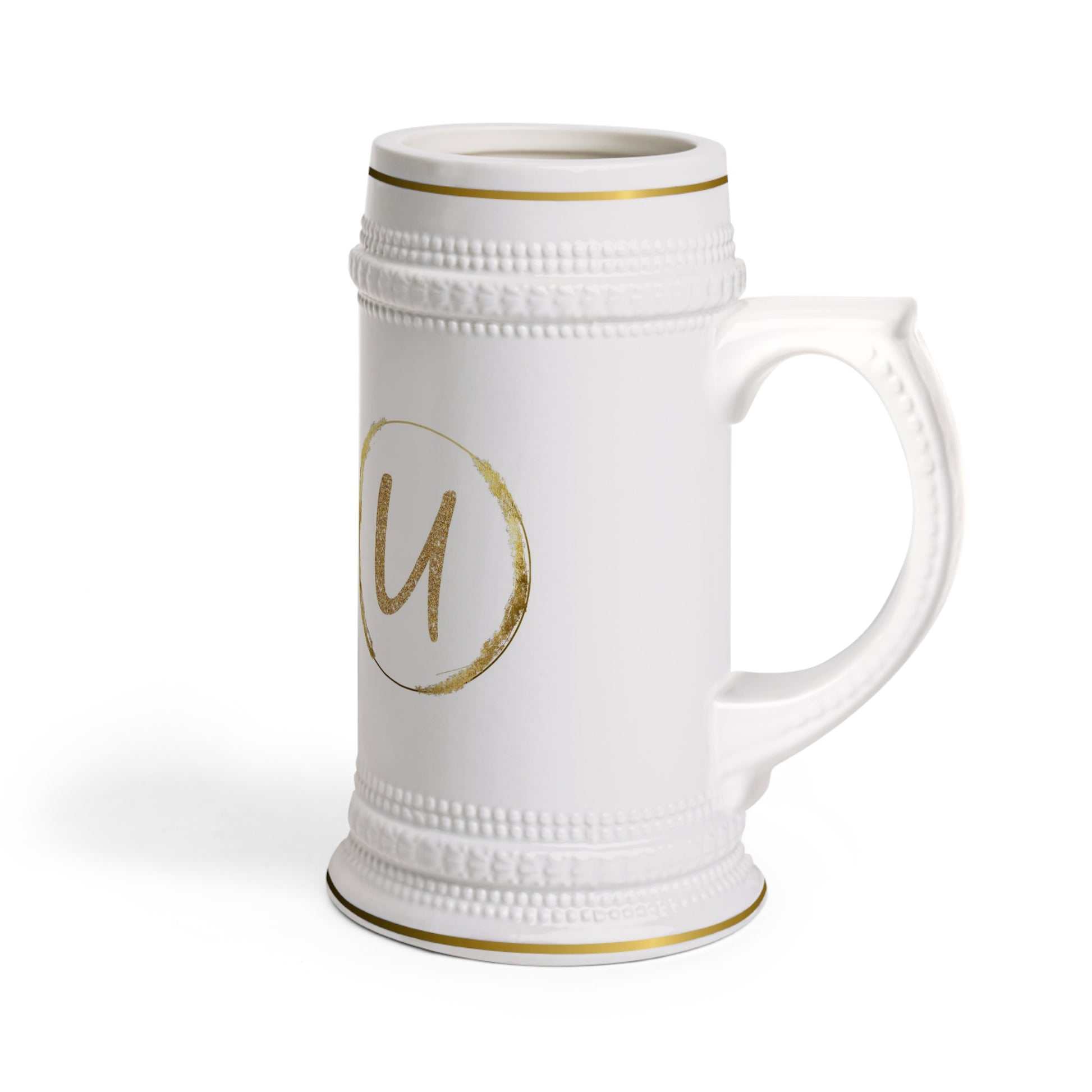 Letter U - Personalized Beer Stein Mug – Custom Initial Ceramic Stein with Gold Accents | Perfect Gift for Beer Lovers
