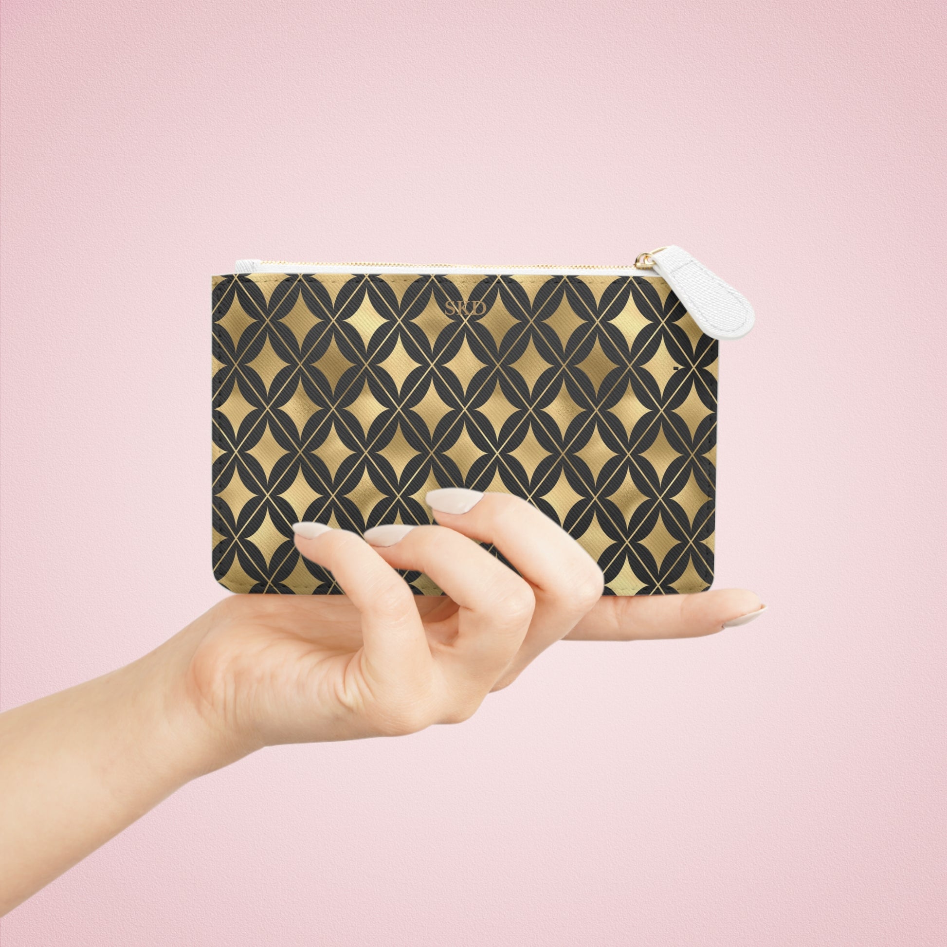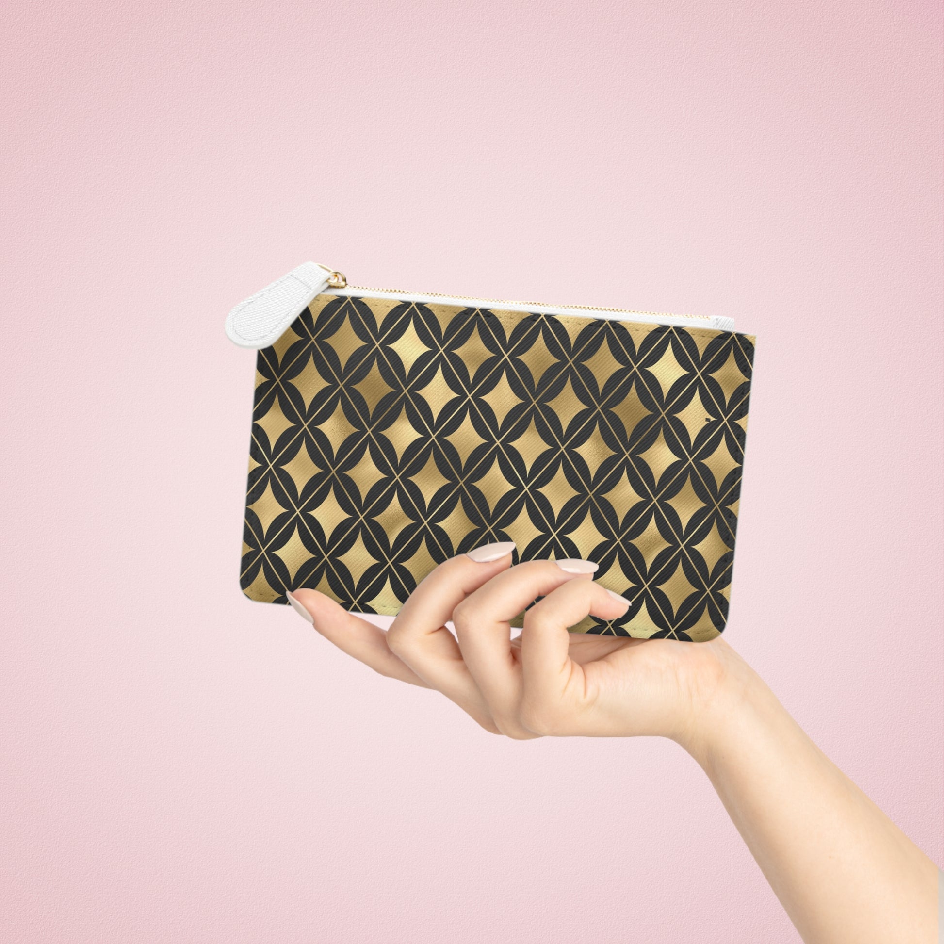 Crafted from premium, cruelty-free faux leather with a refined Saffiano texture, this mini clutch delivers the luxurious look and feel of genuine leather while honoring eco-conscious values. A gold-toned zipper provides a radiant finish, transforming the piece into a versatile accent—equally at home at brunch, a cocktail soirée, or wrapped as an unforgettable gift.