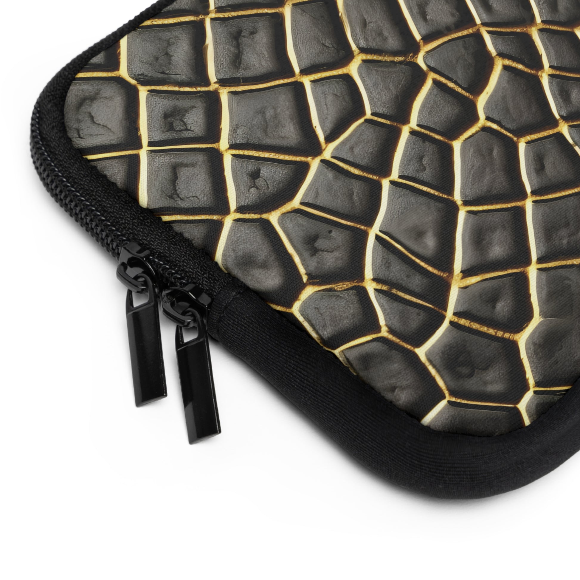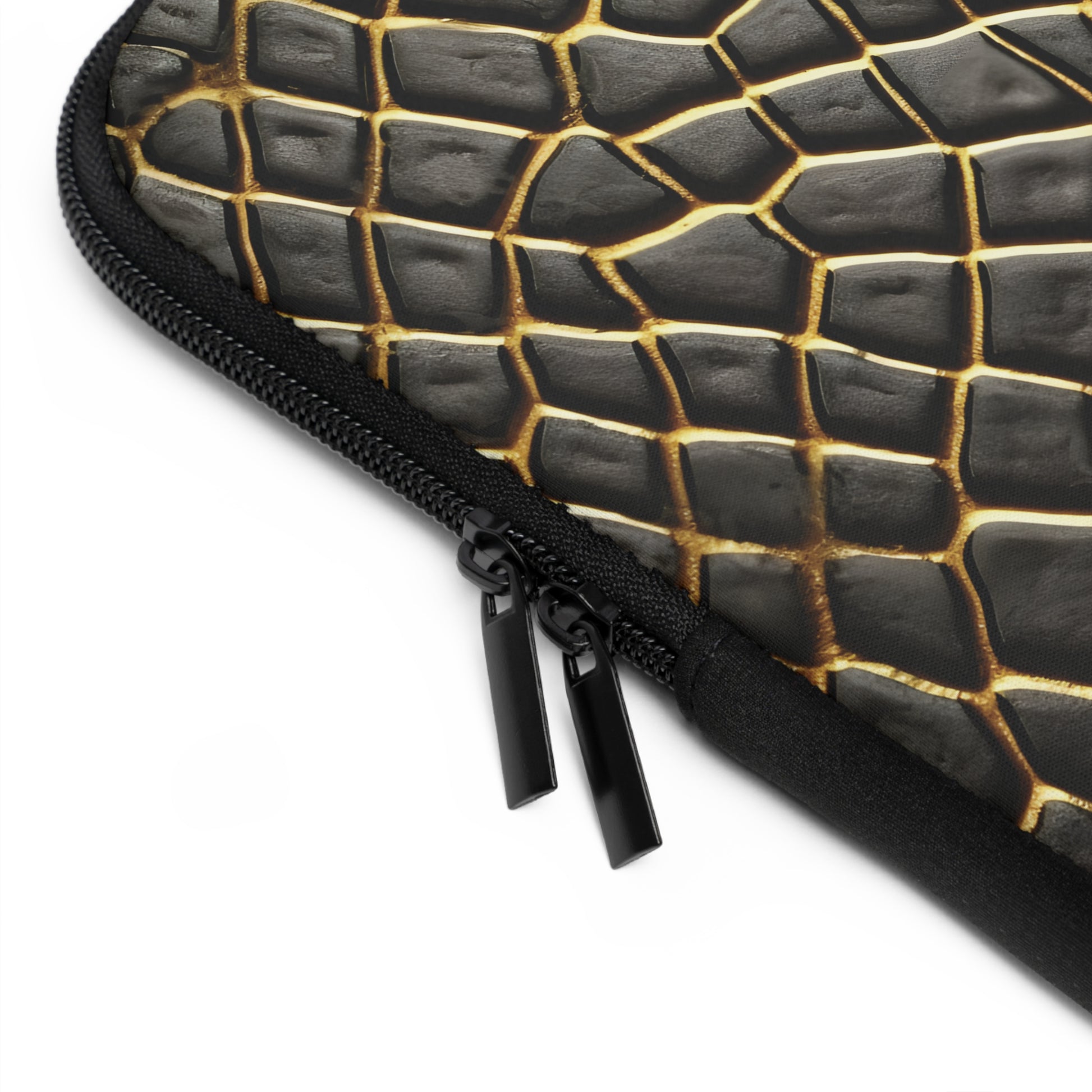 Unleash your style and protect your tech with our Limited Edition Obsidian Venom Laptop Sleeve, with a striking black & gold faux snake pattern, where fashion meets function. Designed for students, professionals, and digital creatives, this sleek neoprene laptop case blends cutting-edge protection with a bold, statement-making dragon scale pattern. The lightweight, water-resistant construction keeps your device safe from spills, dust, and daily wear, while the shock-absorbing foam padding cushions against minor bumps.