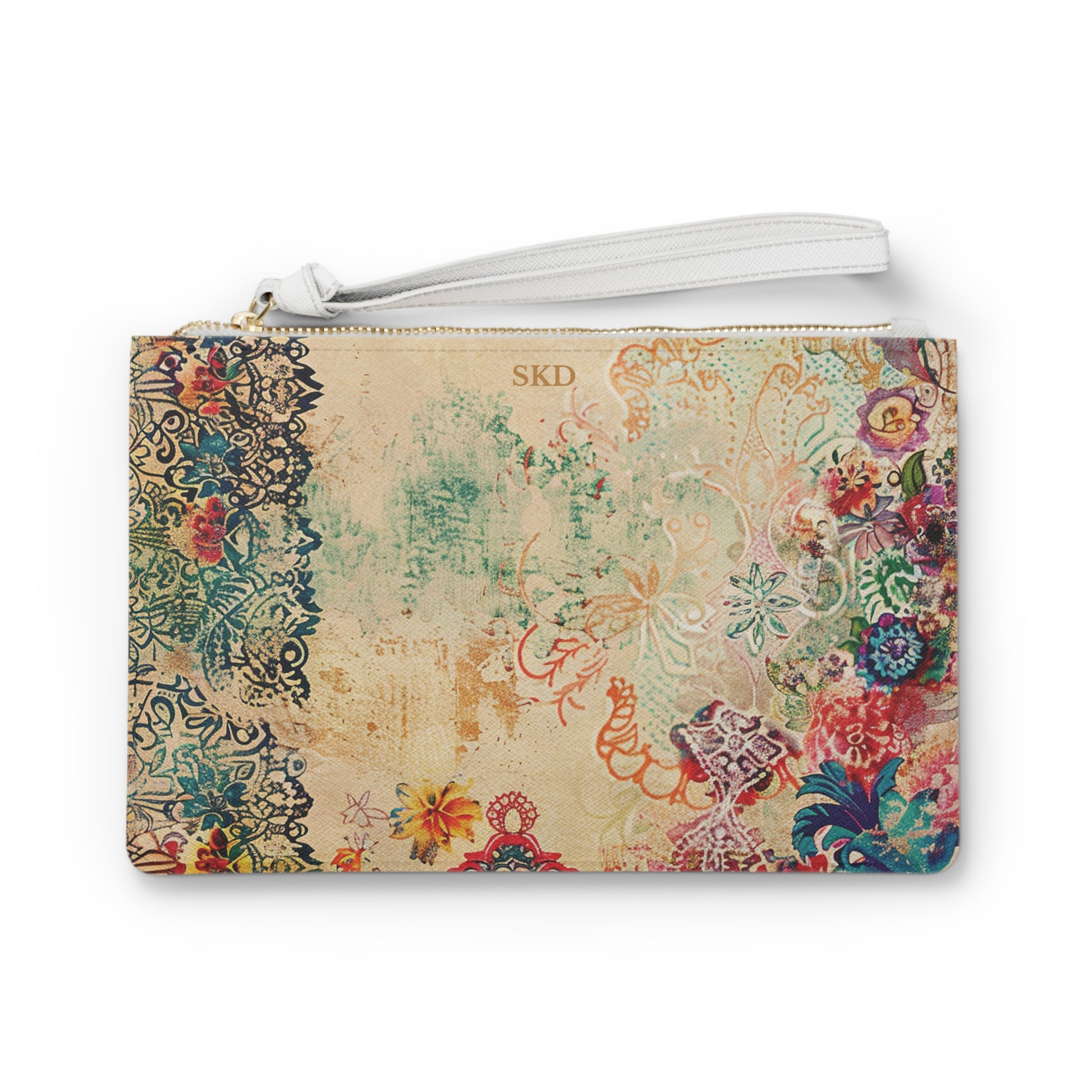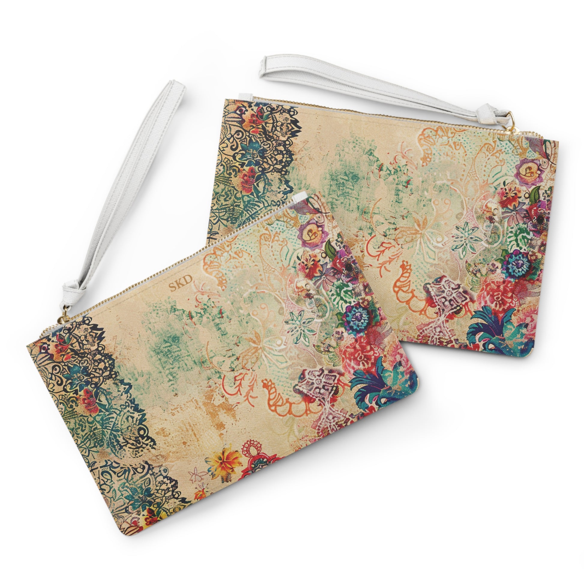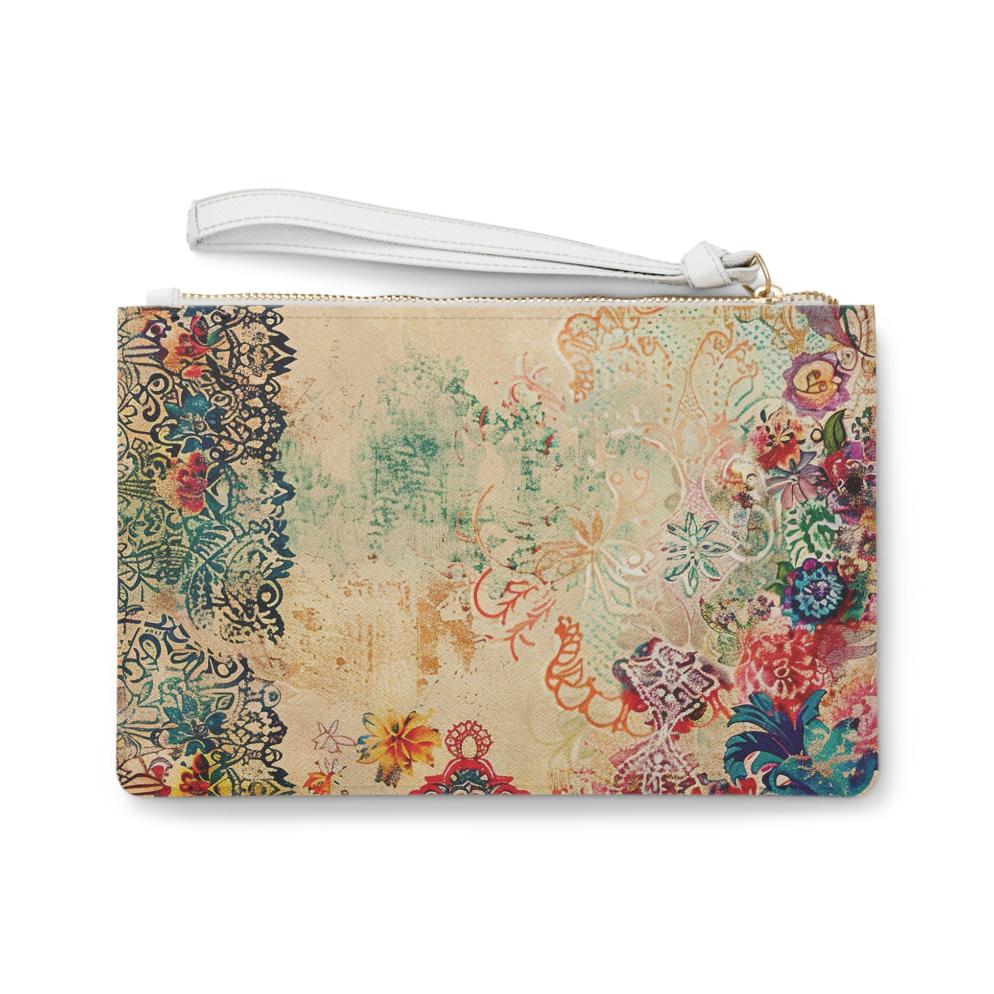 Celebrate artistic beauty with the Limited Edition Timeless Tapestry — the ivory faux leather clutch adorned with delicate floral motifs, ornate lace-inspired accents, and vibrant garden hues that exude romantic elegance and timeless charm. Crafted from premium faux leather with a smooth, refined finish, this statement accessory transitions effortlessly from a sunlit brunch to an evening of graceful sophistication. Its lightweight design and crisp white wrist strap offer both comfort and modern contrast, while the sleek silhouette keeps your essentials secure and organized. Perfect for weddings, garden parties, or art-inspired soirées, this clutch blends whimsical beauty with contemporary versatility, making it a coveted piece for those who treasure luxury with a touch of artistry.